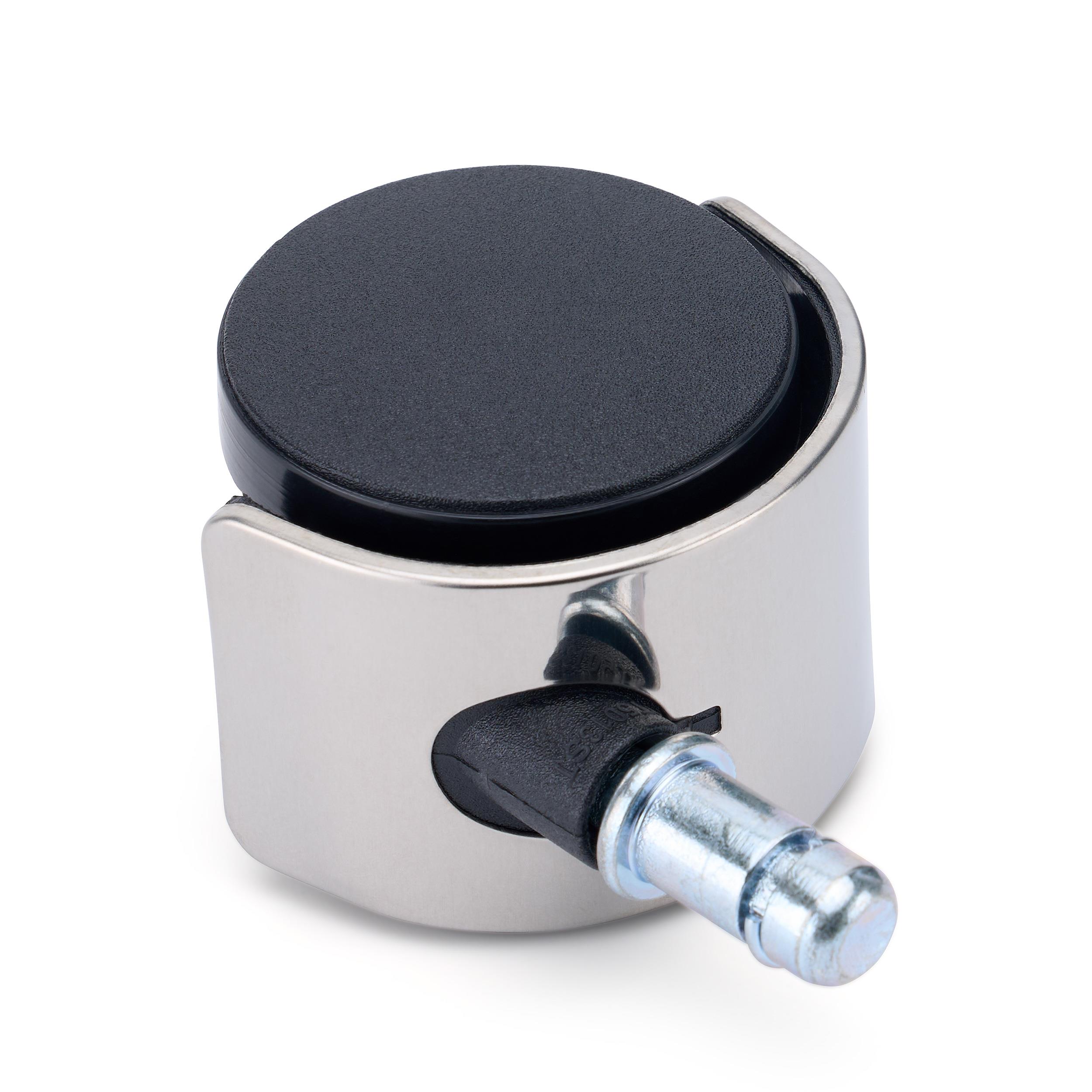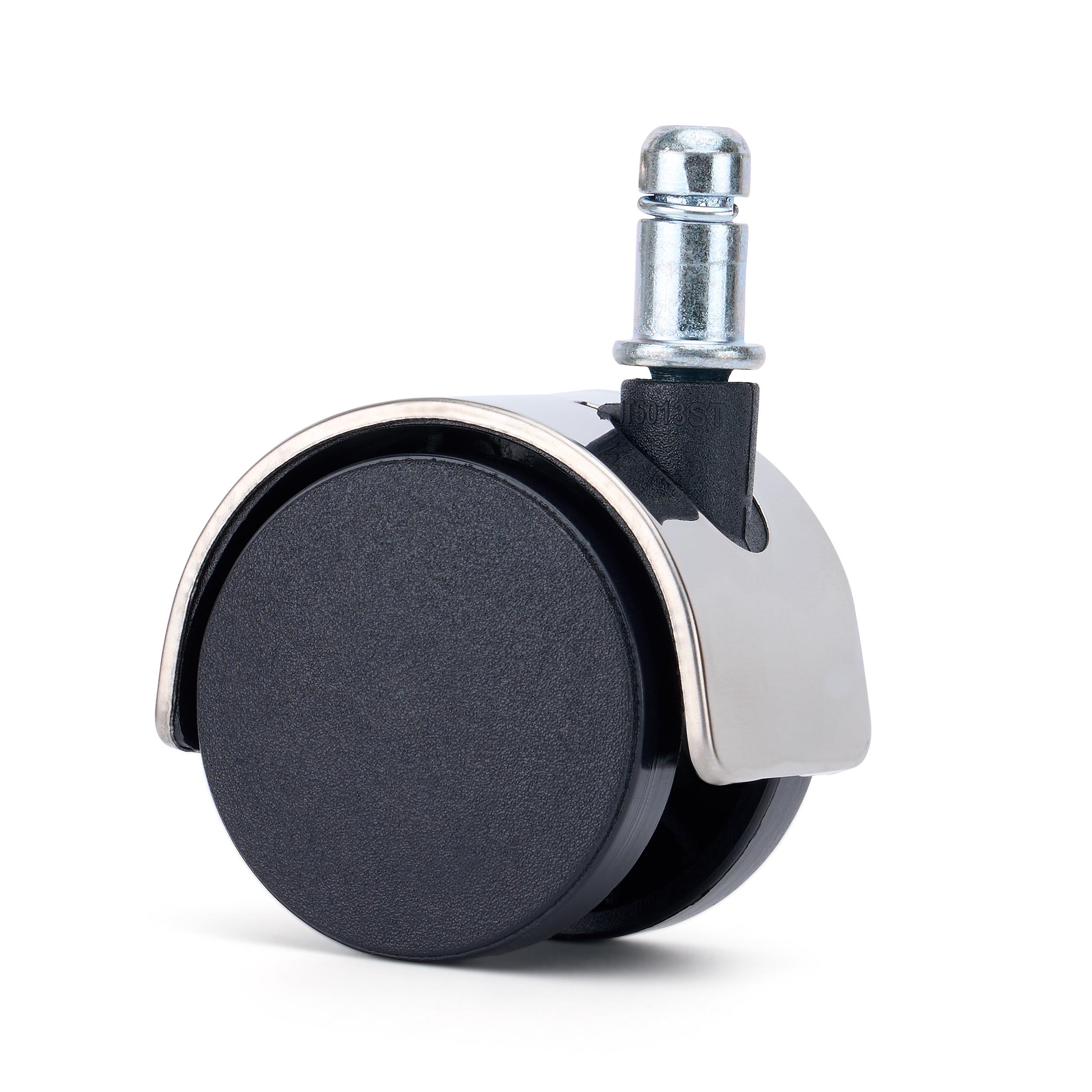 5x Rodas para Cadeira de Escritório COVER 11x50 mm, Acabamento Cromado, para Tapetes e Alcatifa, Cor Prateado