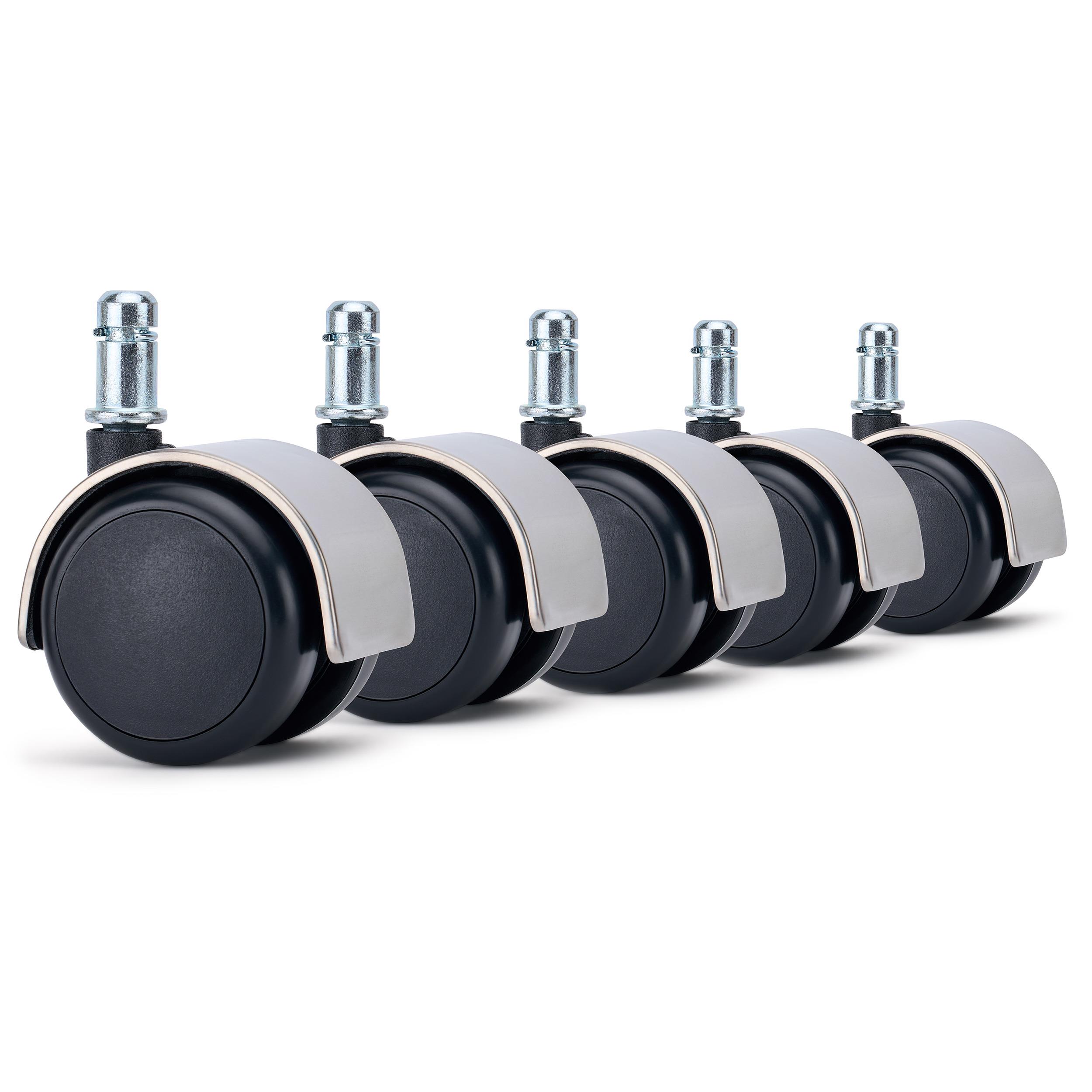 5x Rodas para Cadeira de Escritório COVER 11x50 mm, Acabamento Cromado, para Todo o tipo de superfícies, Cor Prateado