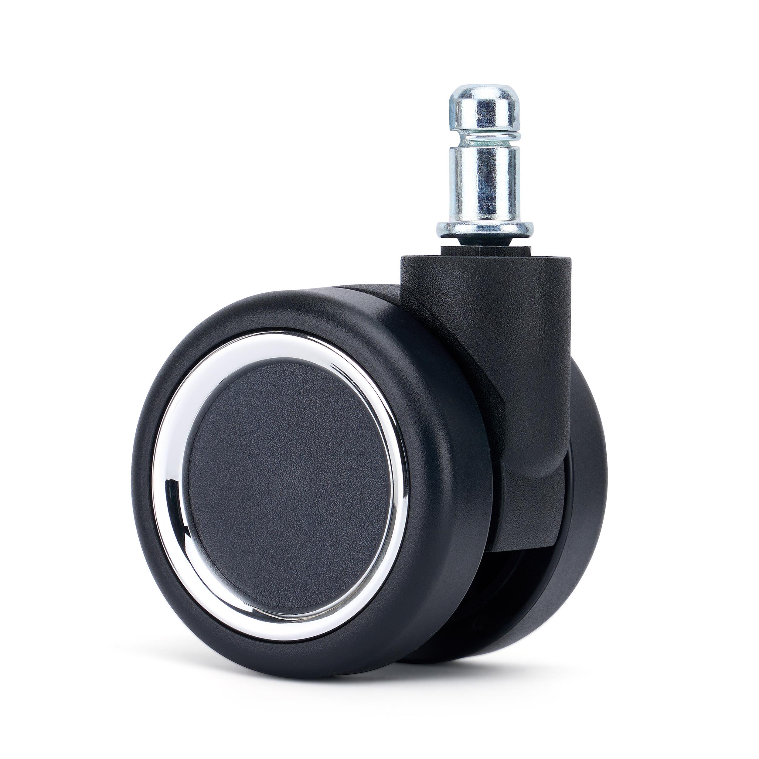 Conjunto de 5 rodas para cadeiras de escritório SMART. Concebidas para proporcionar um deslizamento suave, silencioso e estável em todos os tipos de superfícies, estas rodas são indispensáveis no escritório, no estudo ou em home office, melhorando a funcionalidade da cadeira e conferindo-lhe um toque elegante e sofisticado.