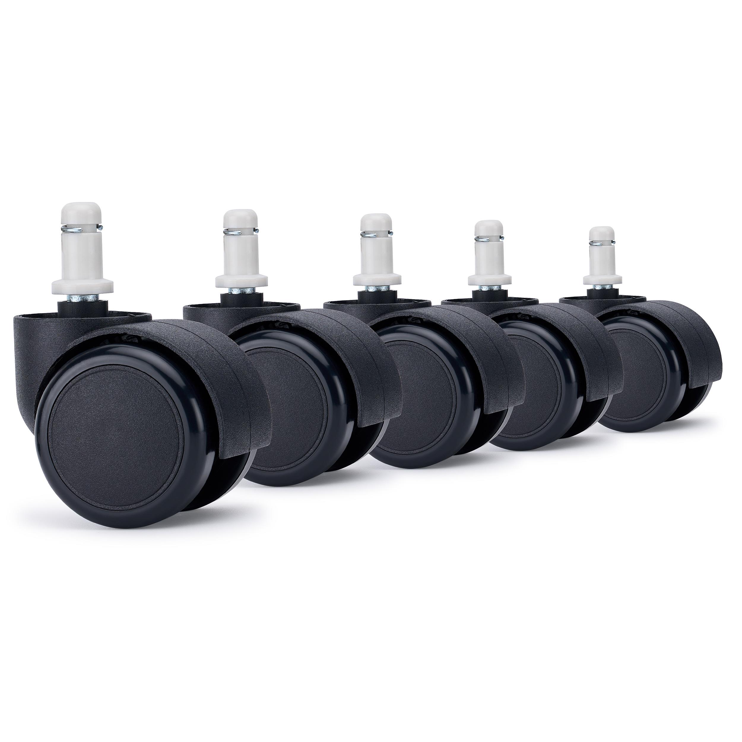 A instalação é simples e rápida, graças ao perno universal em metal de 11 mm, que garante um encaixe firme e duradouro. A versatilidade é um dos grandes pontos fortes desta gama, além da versão em preto, as rodas estão disponíveis em cinzento, azul, verde e branco. Esta variedade permite uma personalização total, possibilitando combinar as rodas com a base da cadeira ou com os detalhes da decoração envolvente.