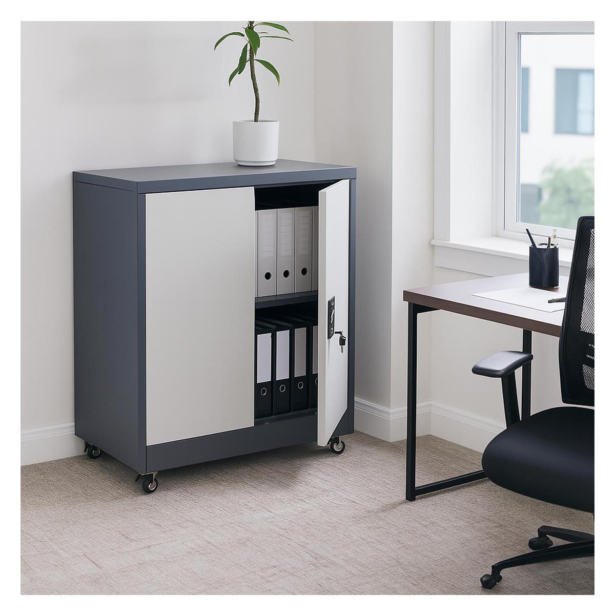 Armário Arquivador BRENTON, 98x40x80cm, com rodas, em aço, cor cinzento escuro e cinzento claro