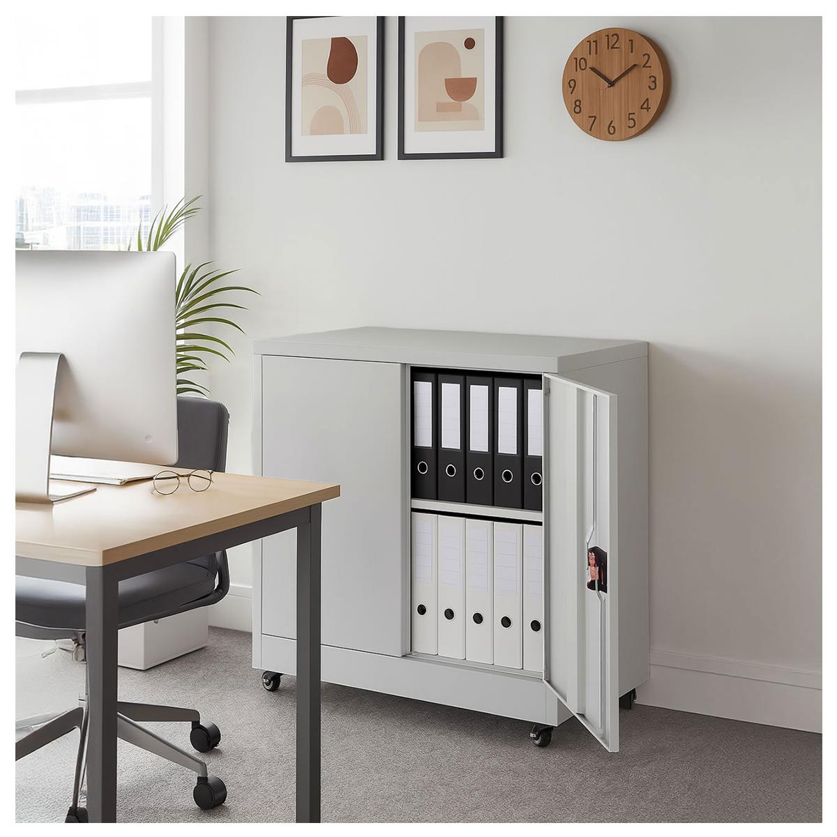Portas com fechadura e prateleira regulável em altura• Ideal para armazenar documentos, pastas,...