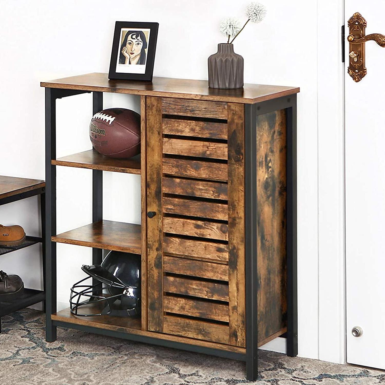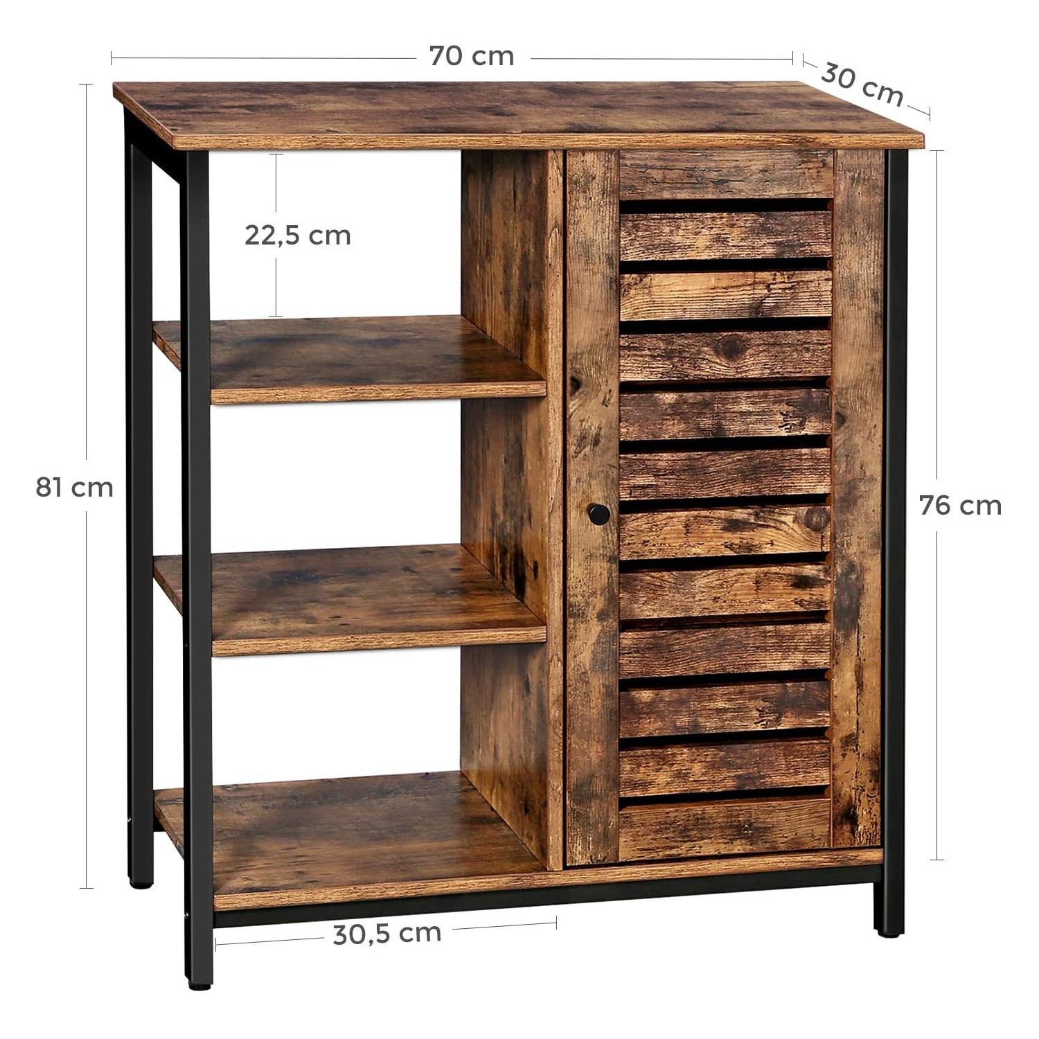 Com o design rústico e industrial, este armário multifuncional com 3 prateleiras abertas, e 3 escondidas pela porta, é a escolha perfeita. Ponha os seus livros, ou documentos, no lugar adequado!