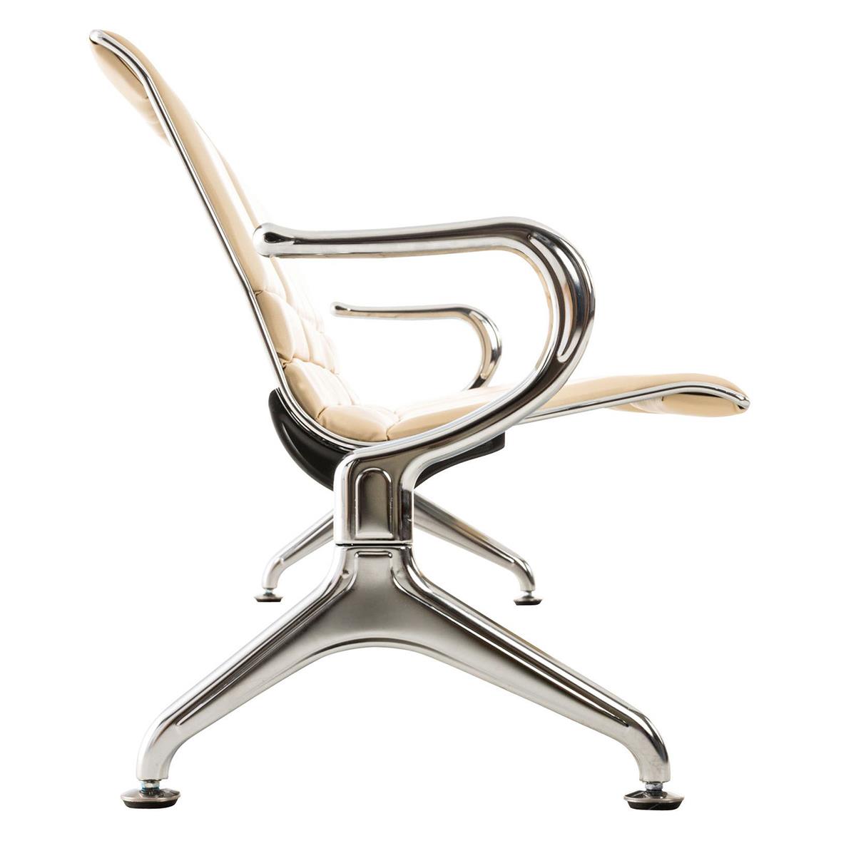 Bancada 4 Lugares, AURORA, Estructura Metálica, Assento Em Pele, Cor Creme