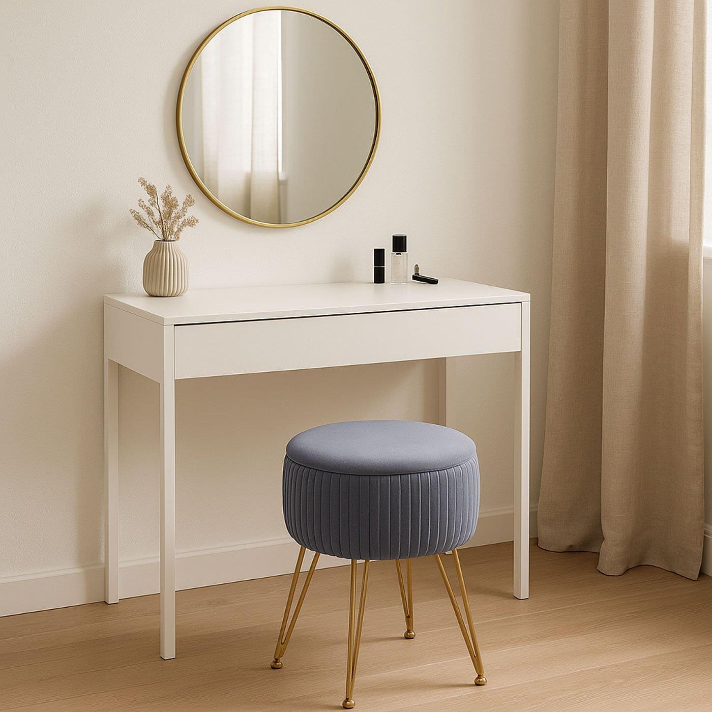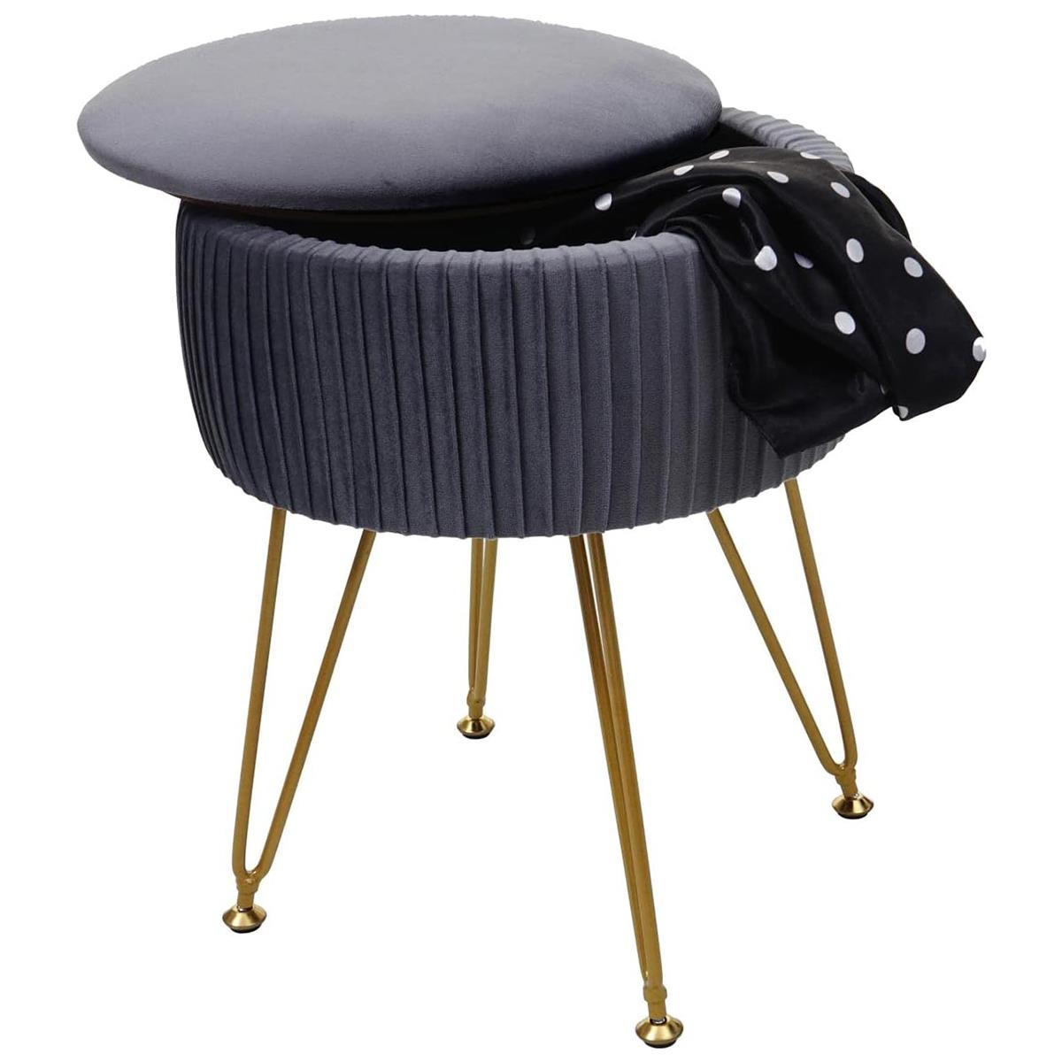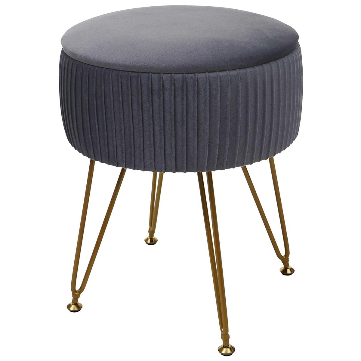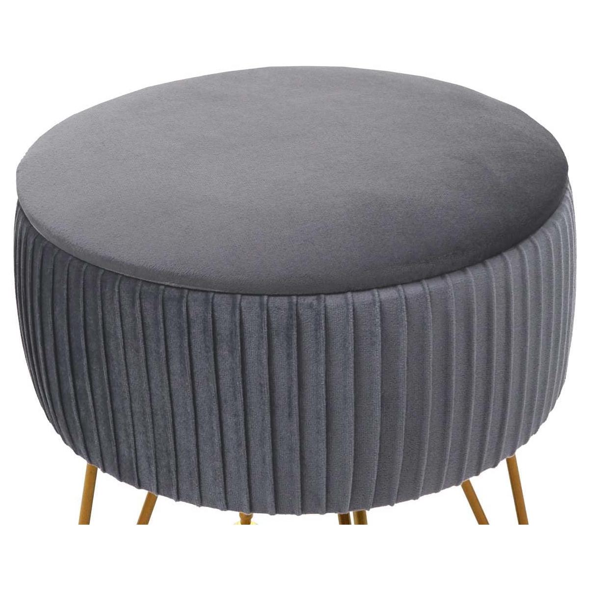 Banco de Trabalho MIKO, Compartimento para objetos, pernas douradas, Pano de cor Cinzento