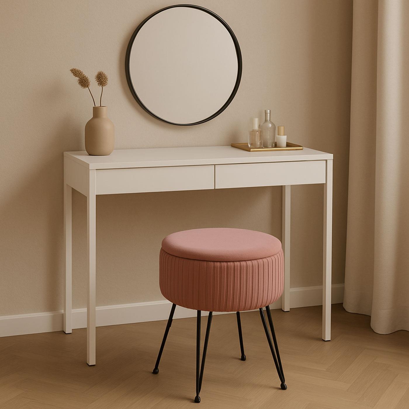 Banco de Trabalho MIKO, Compartimento para objetos, pernas pretas, Pano de cor Rosa
