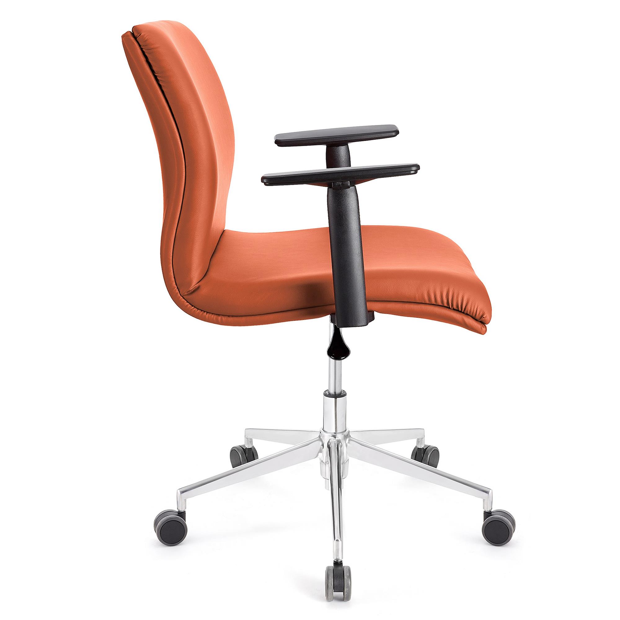Cadeira de Escritório ANIBAL BASE PRO PELE , Braços Ajustáveis, Acolchoado em Pele Laranja