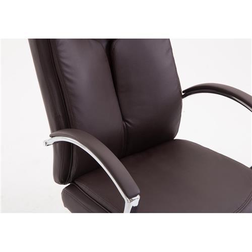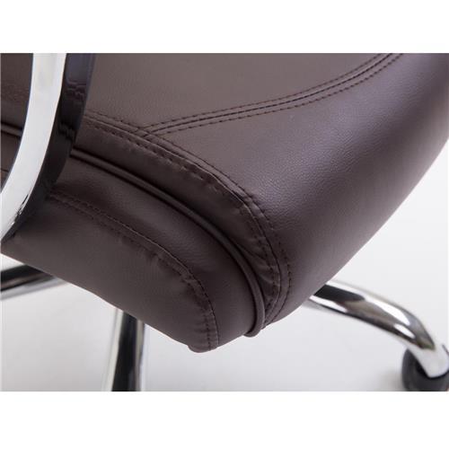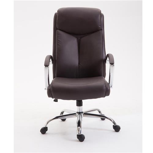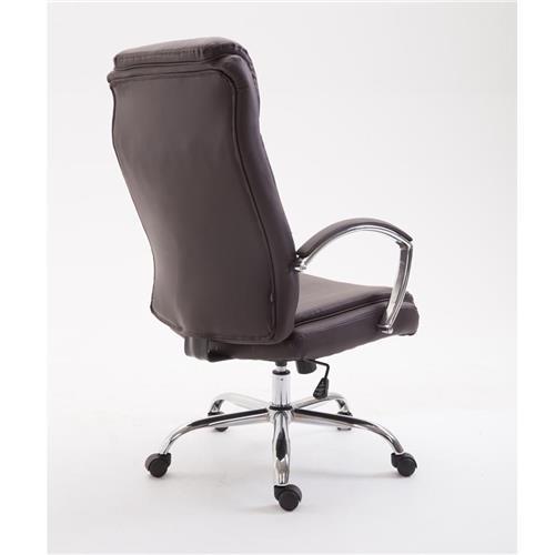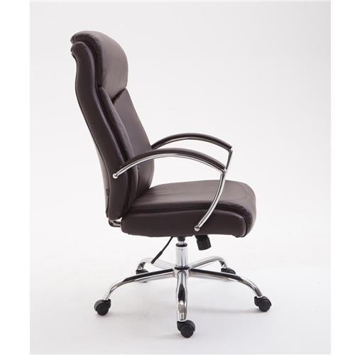 Cadeira de Escritório BAUDY, Grosso Acolchoado, Base Metálica, Em Pele, Cor Castanho Escuro