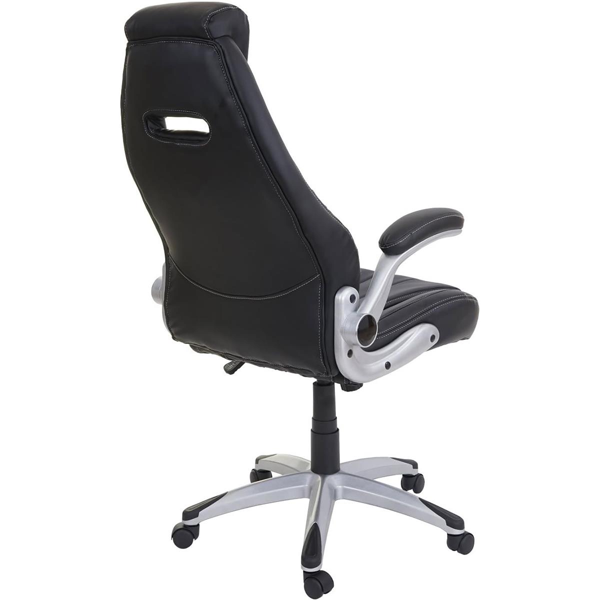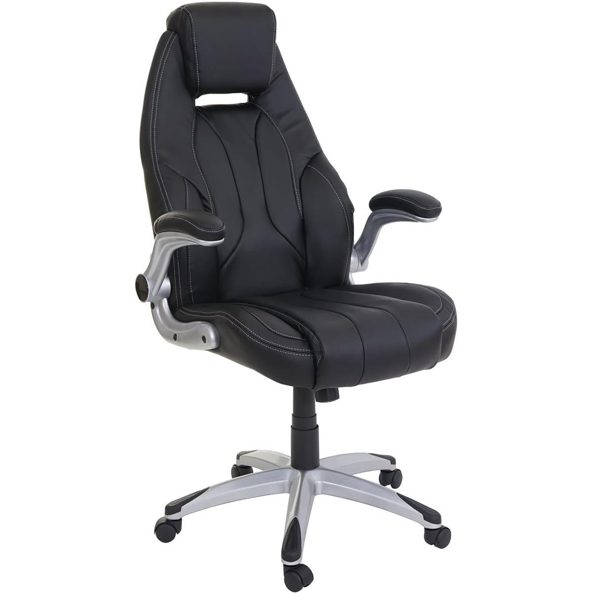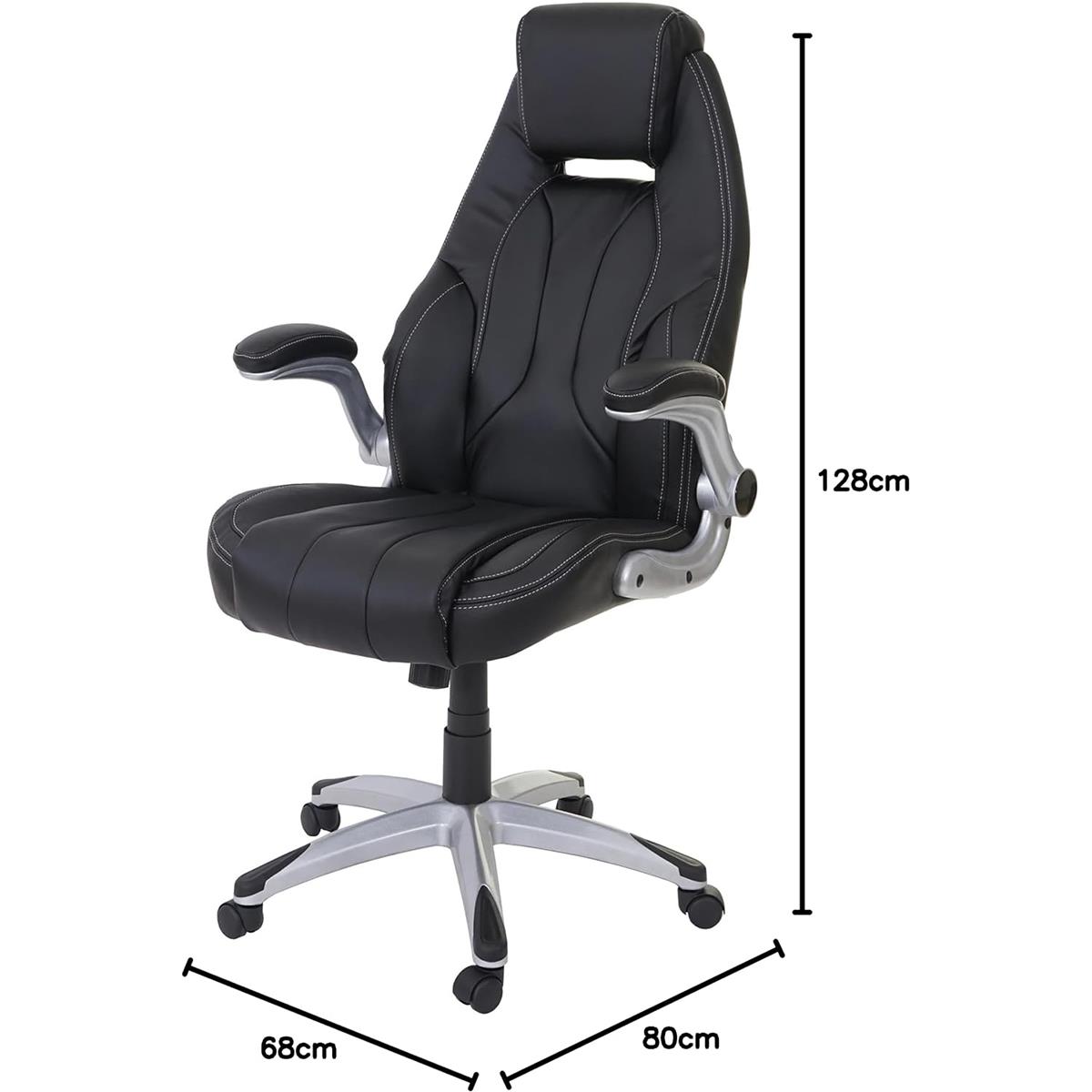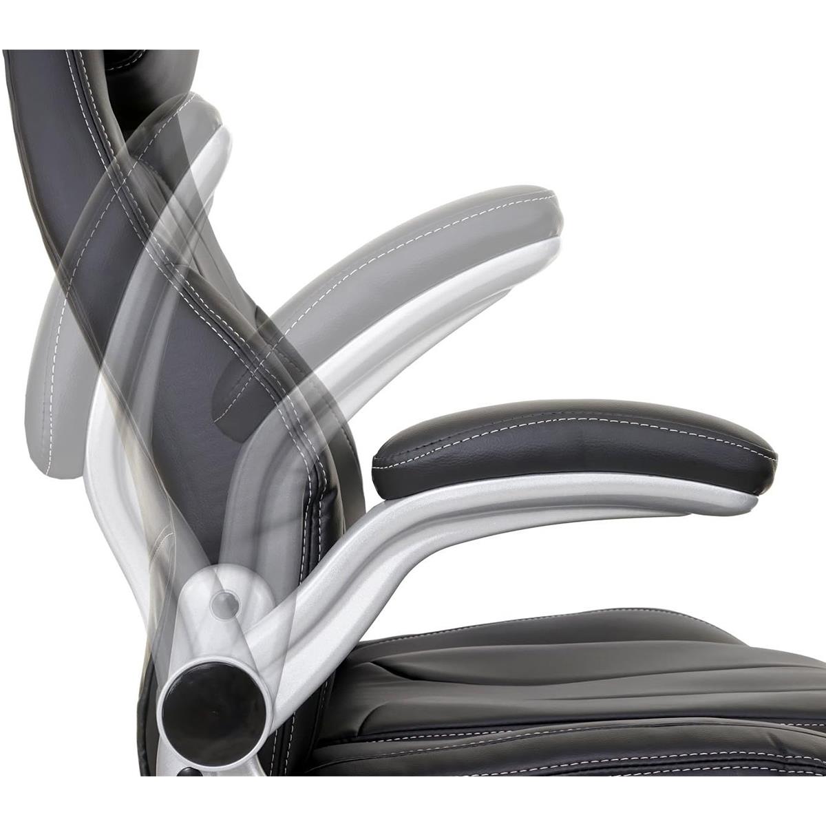 Cadeira de Escritório BOBI, Acolchoado Grosso, Apoio de Braços Rebatíveis, em Pele de cor Preto