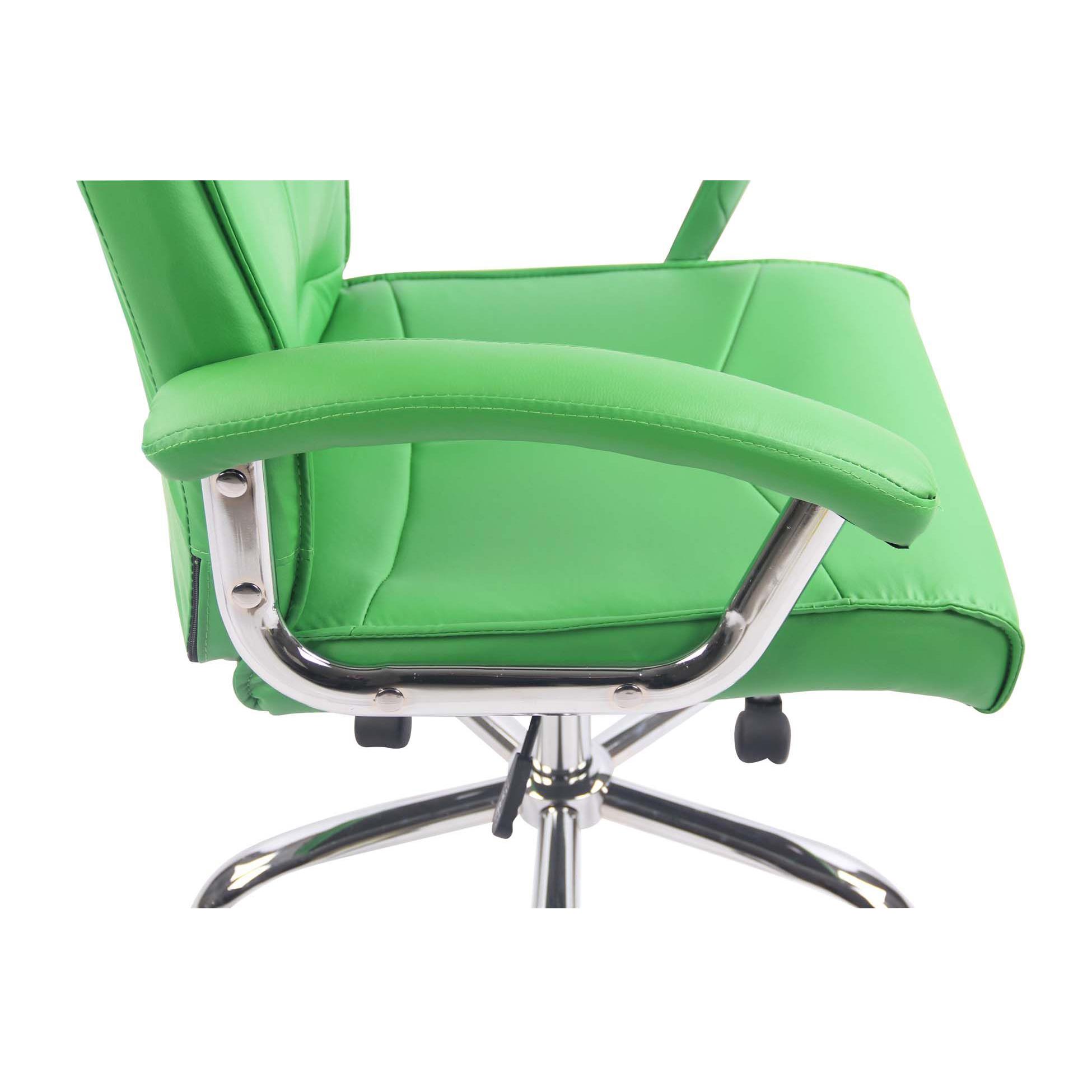 Cadeira de Escritório CALESTY, Grosso Acolchoado, Base metálica, Em Pele, Cor Verde