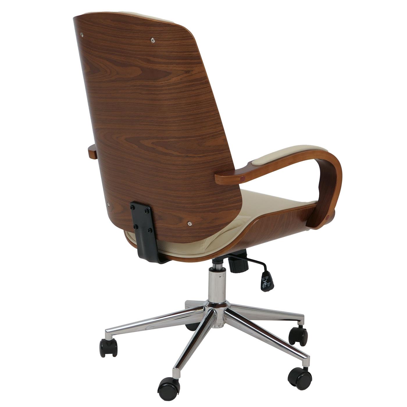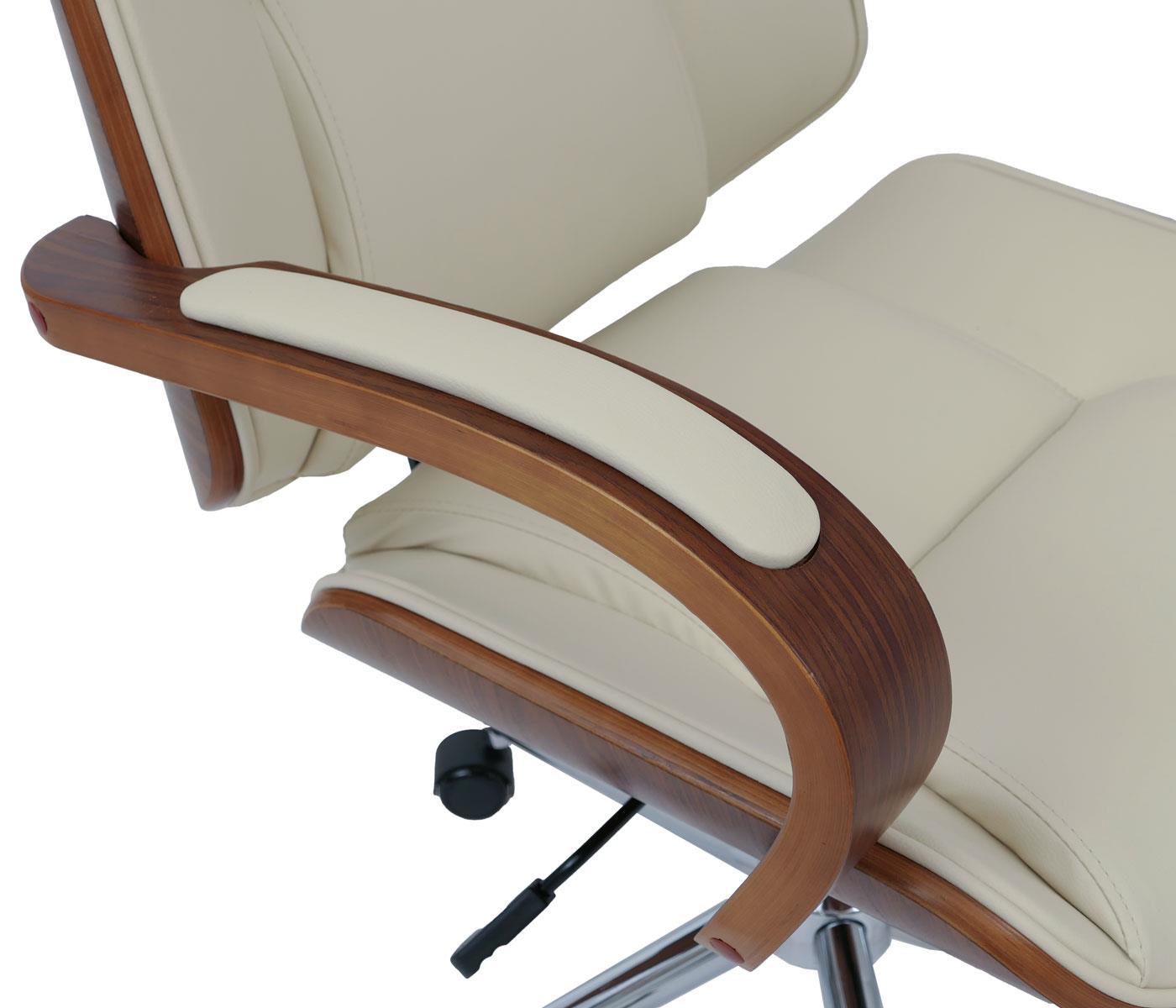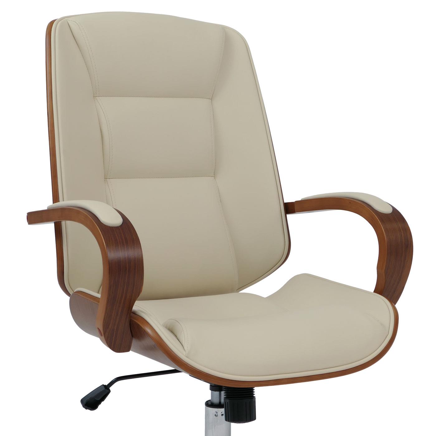 Cadeira de Escritório CLARIN, Acolchoado Denso, Design Elegante em Madeira de Nogueira e Pele, Cor Creme