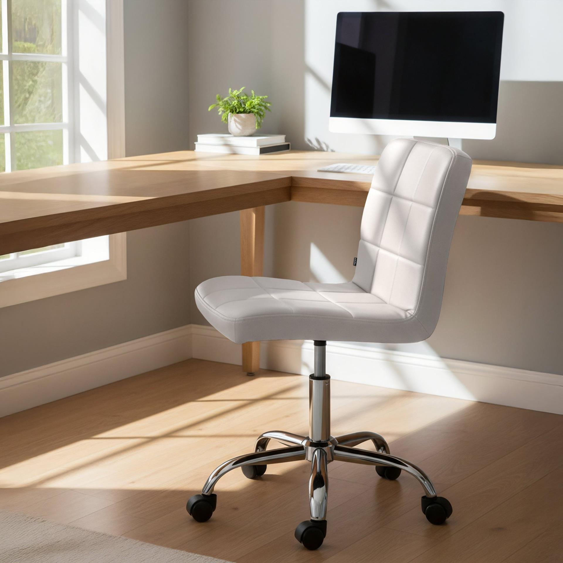 Apresentamos a cadeira de escritório CLIP um modelo funcional e versátil que se destaca pelo seu atrativo design moderno. Esta cadeira é prática e ideal para espaços pequenos, graças às suas reduzidas dimensões, já que carece de braços, o que facilita a sua colocação e movimento. O modelo perfeito para combinar com a decoração do teu escritório ou casa.