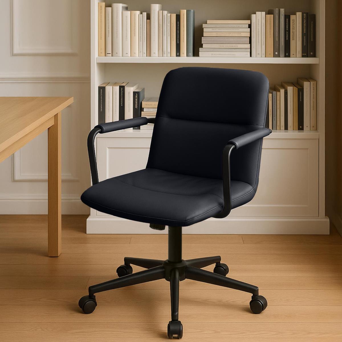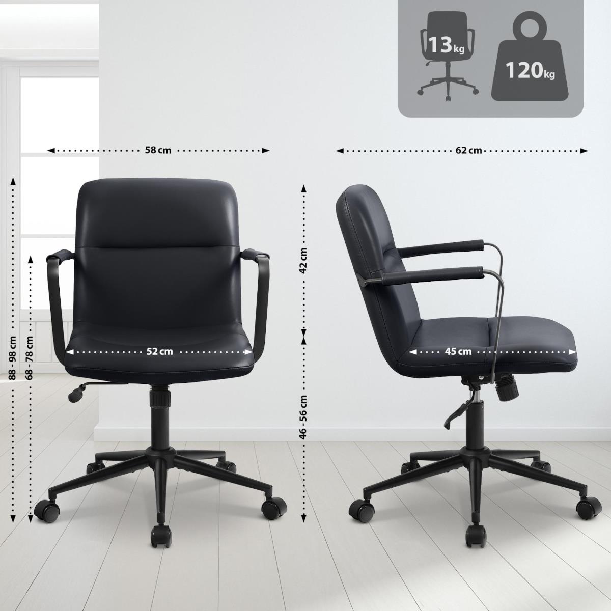 Cadeira de Escritório COBY, Acolchoado Confortável, Em Pele Verdadeira, Cor Preto