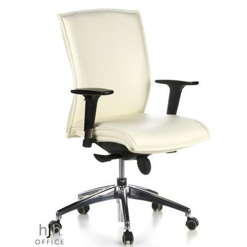 Cadeira de Escritório MILANO 10, Design elegante em Pele Natural, Base Cromada, cor Creme