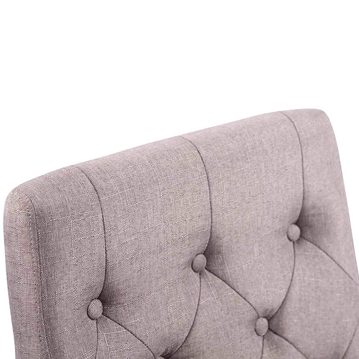 Trata-se de uma cadeira forrada em tecido de grande qualidade, com acabamento em capitoné abotoado. É um material de fácil cuidado e limpeza. Está disponível em várias cores.