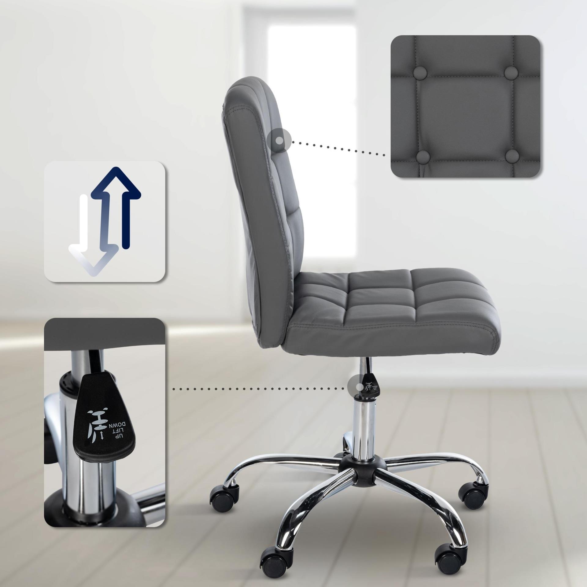 Apresentamos a cadeira de escritório PARKER, um modelo que se destaca pela sua simplicidade e versatilidade, sendo uma excelente opção tanto para ambientes profissionais quanto para o conforto da sua casa. O seu design compacto, com encosto baixo e sem braços, é ideal para espaços reduzidos, garantindo a melhor utilização mesmo em locais com pouco espaço.