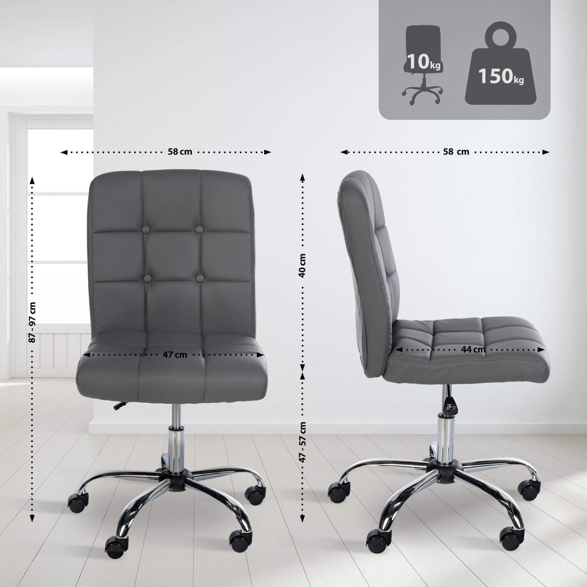 Cadeira de Escritório PARKER, Design Moderno Com Costuras Visíveis, Acolchoada, Em Pele, Cor Cinzento