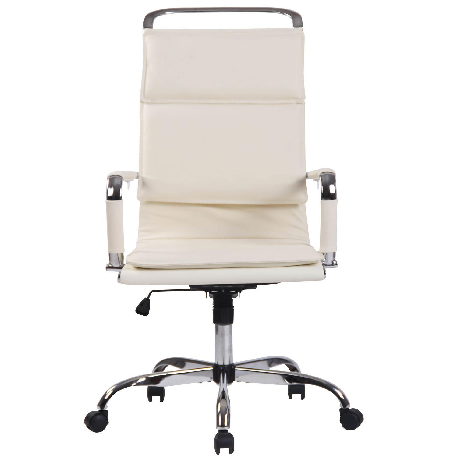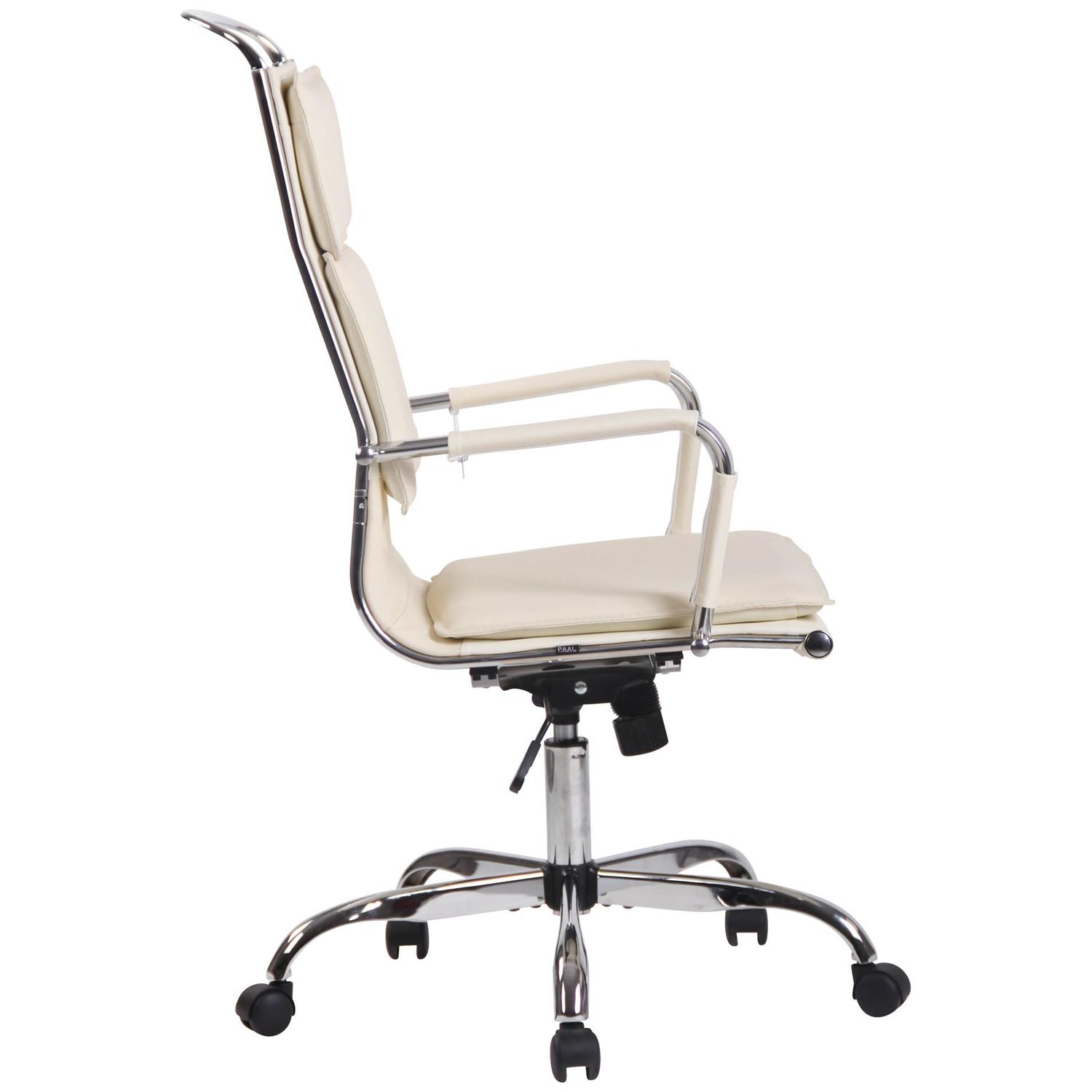 Cadeira de Escritório QUEBEC, Elegante, Confortável, Em Pele Verdadeira, Cor Creme