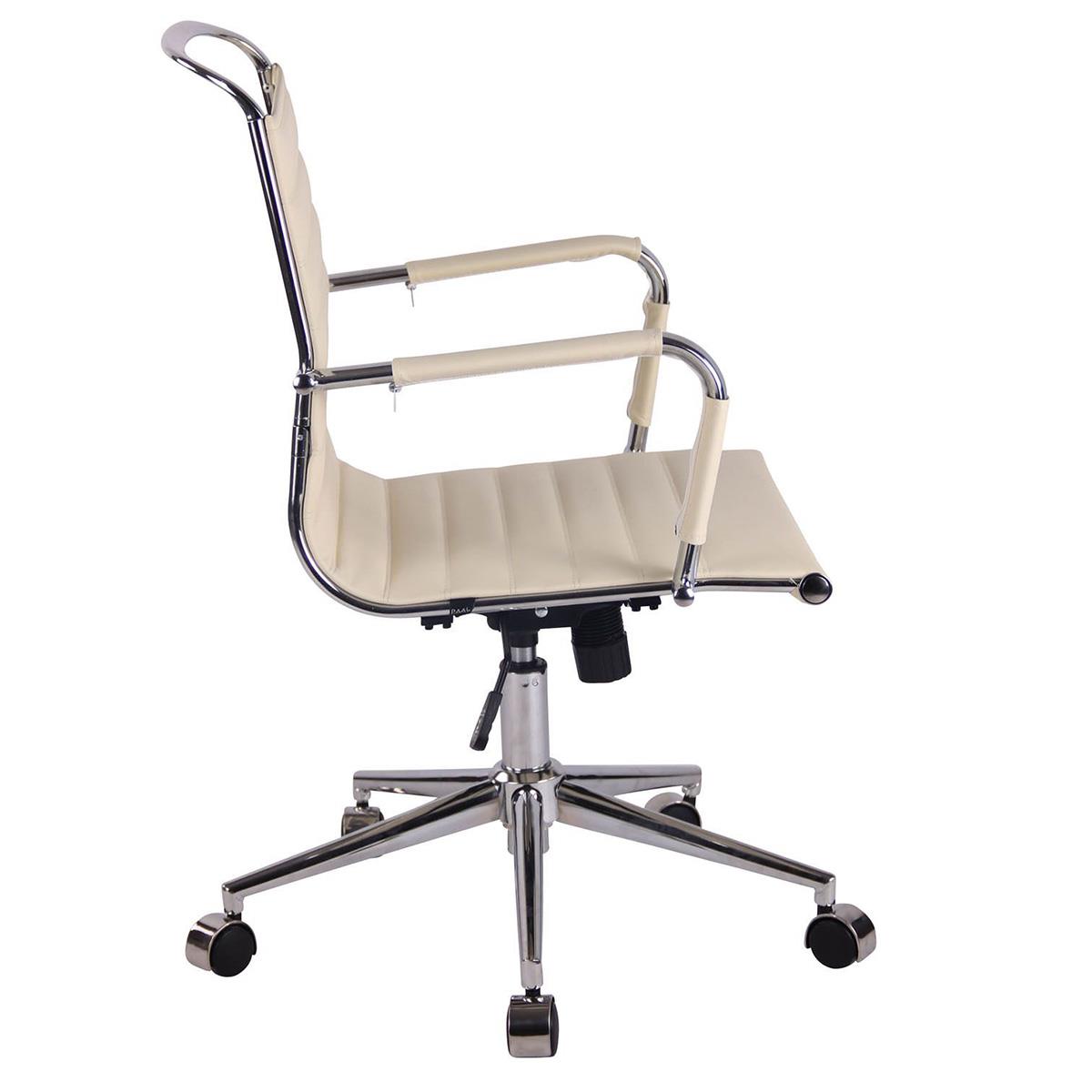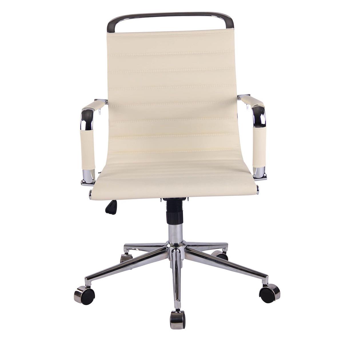 Cadeira de Escritório ZURIQUE, Design Elegante, Costuras Visíveis, Em Pele, Creme