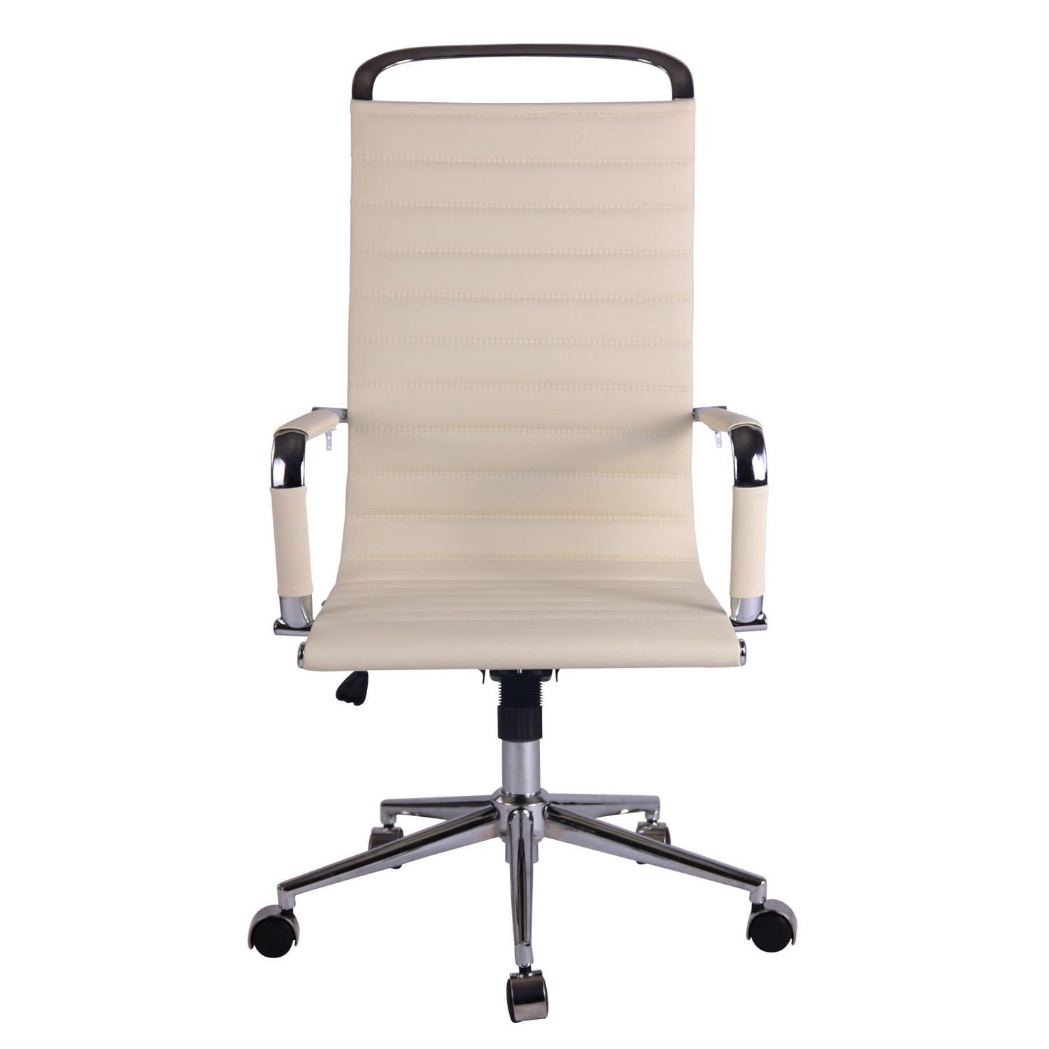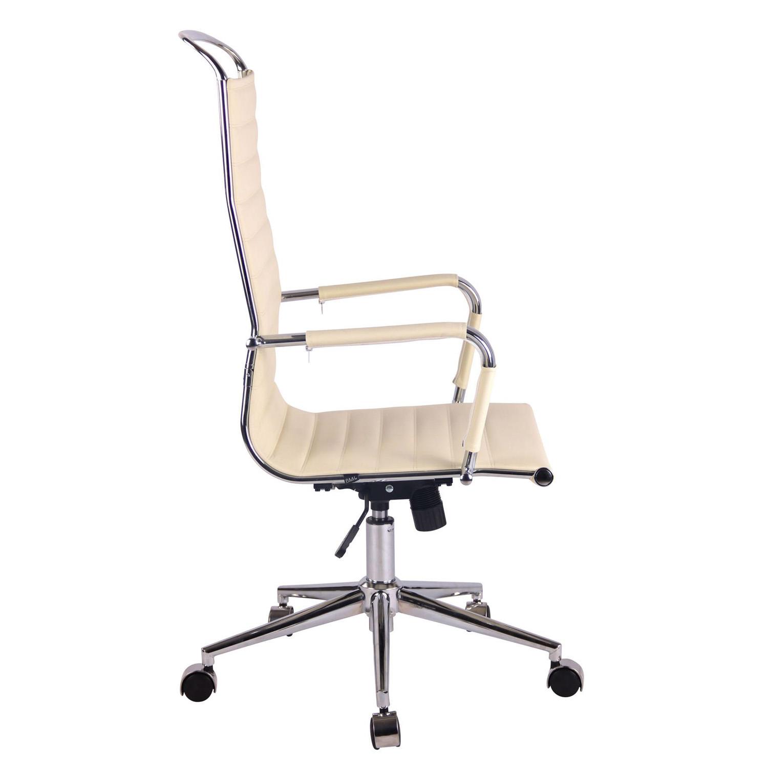 Cadeira de Escritório ZURIQUE, Encosto Alto, Design Elegante, Em Pele, Creme