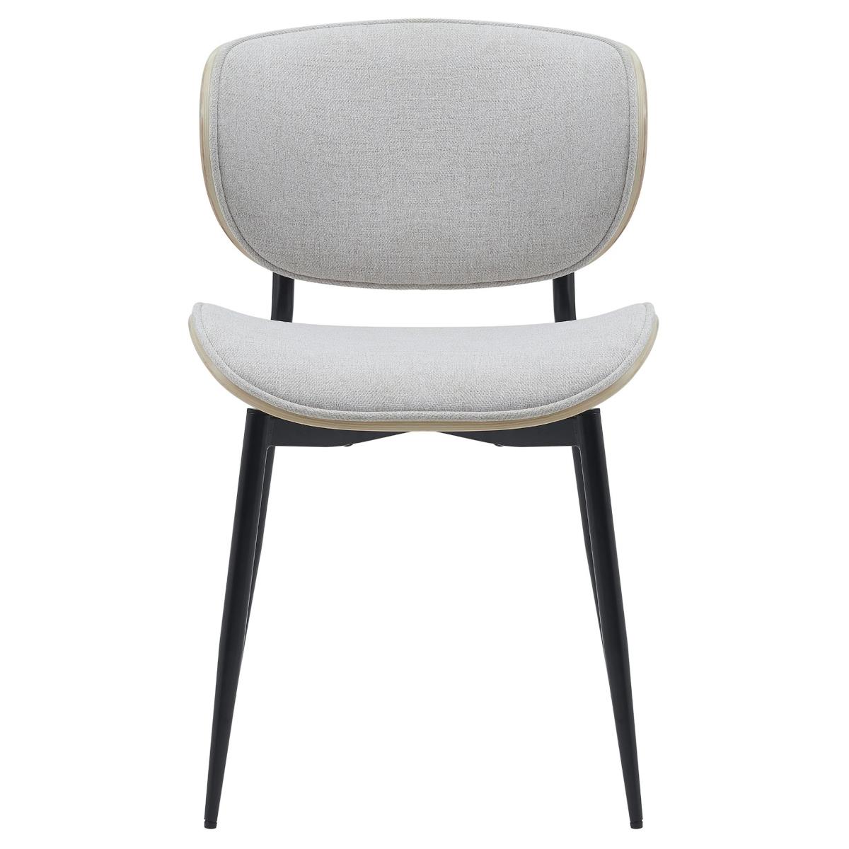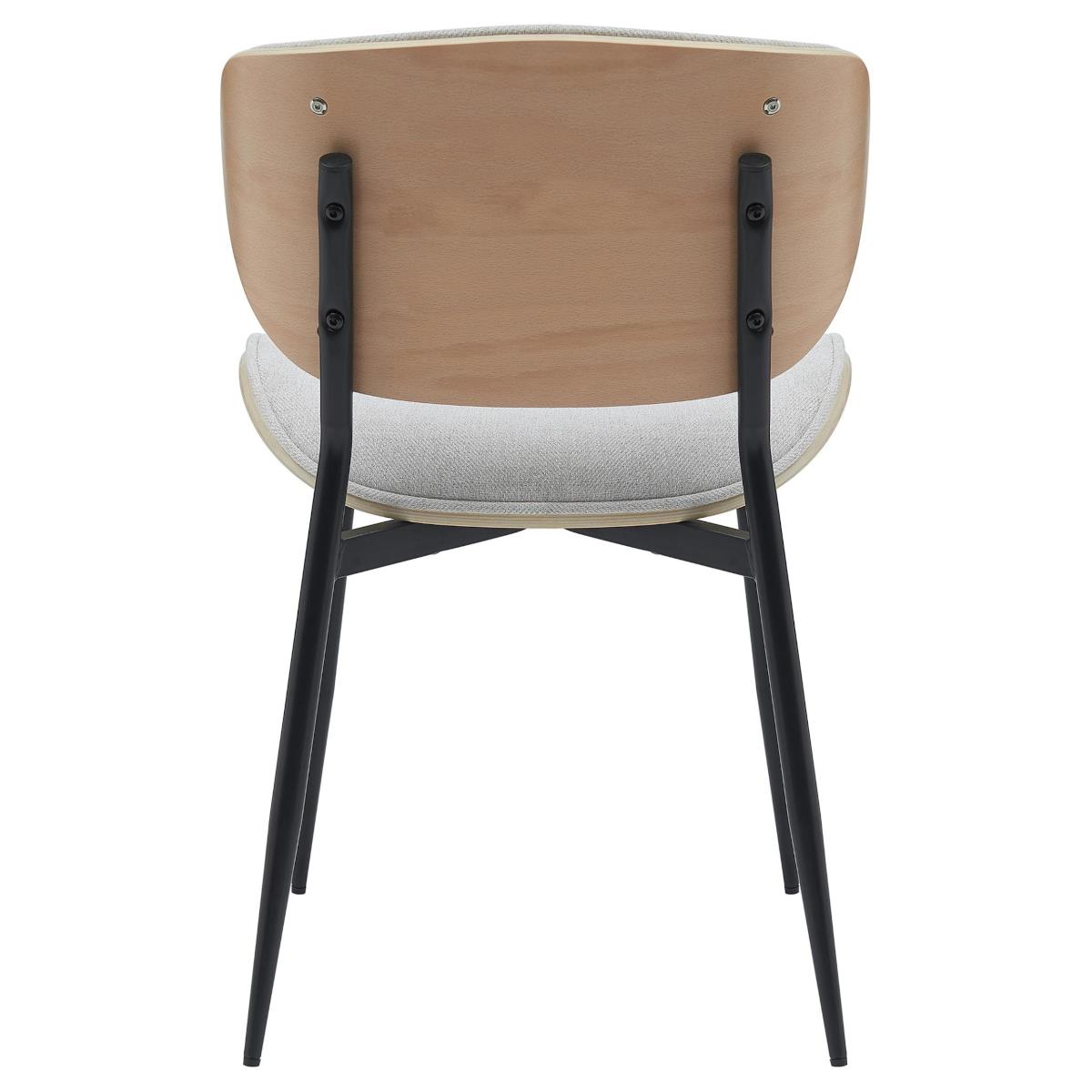 O assento e encosto são acolchoados o que torna a cadeira confortável mesmo após horas de uso. O seu estofamento em tecido agradável ao toque e de fácil limpeza. A estrutura do assento e do encosto é feita de madeira, criando um contraste agradável entre os materiais.