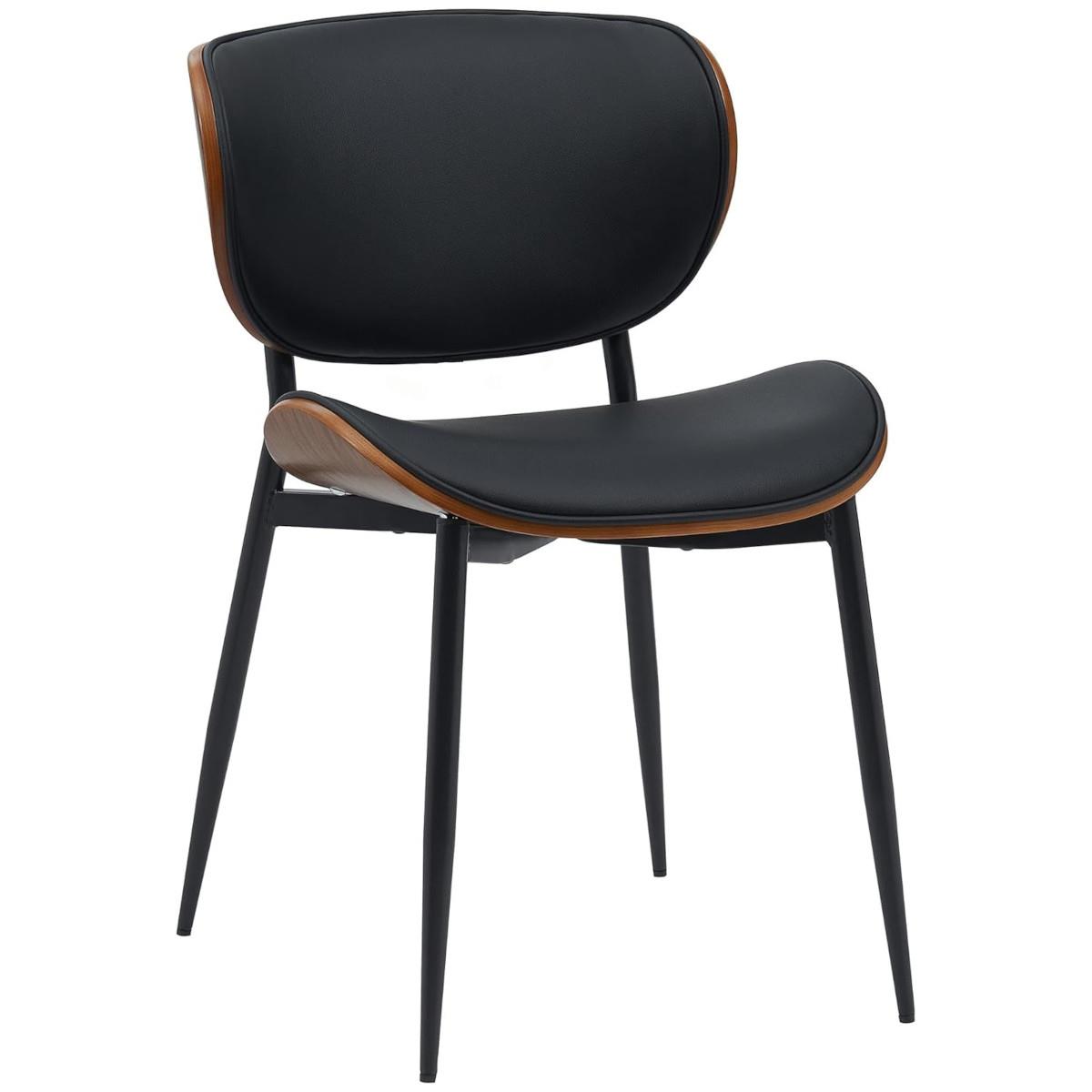 Cadeira de Visita BRONSON, Design Exclusivo, Estrutura de Madeira de Cor Nogueira, em Pele de cor Preto
