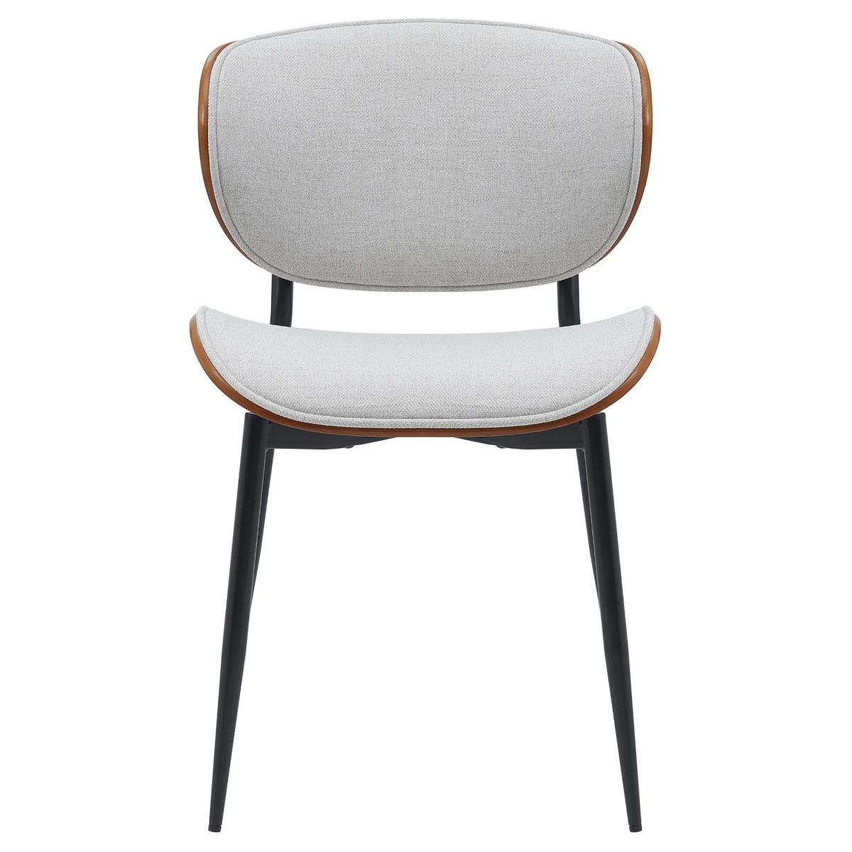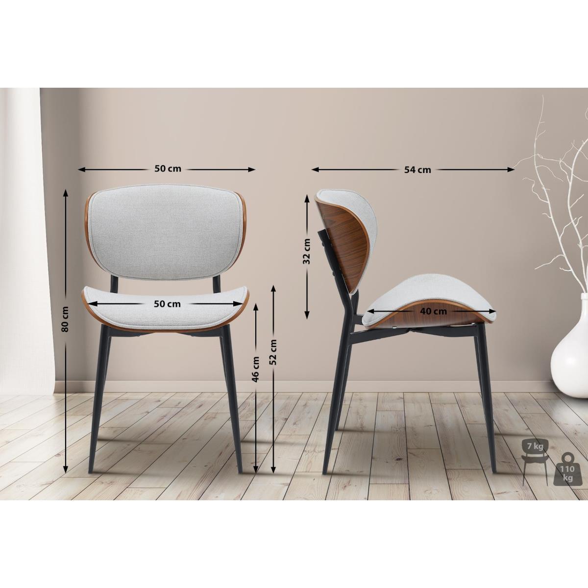 O assento e encosto são acolchoados o que torna a cadeira confortável mesmo após horas de uso. O seu estofamento em tecido agradável ao toque e de fácil limpeza. A estrutura do assento e do encosto é feita de madeira, criando um contraste agradável entre os materiais.