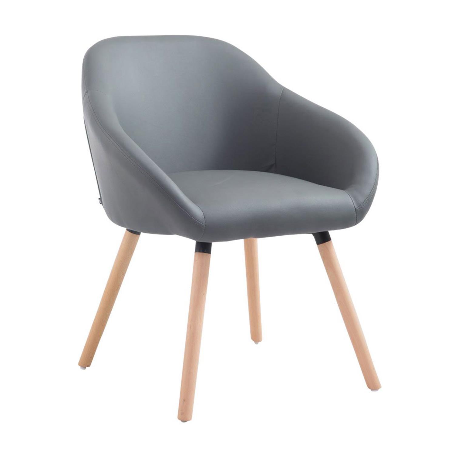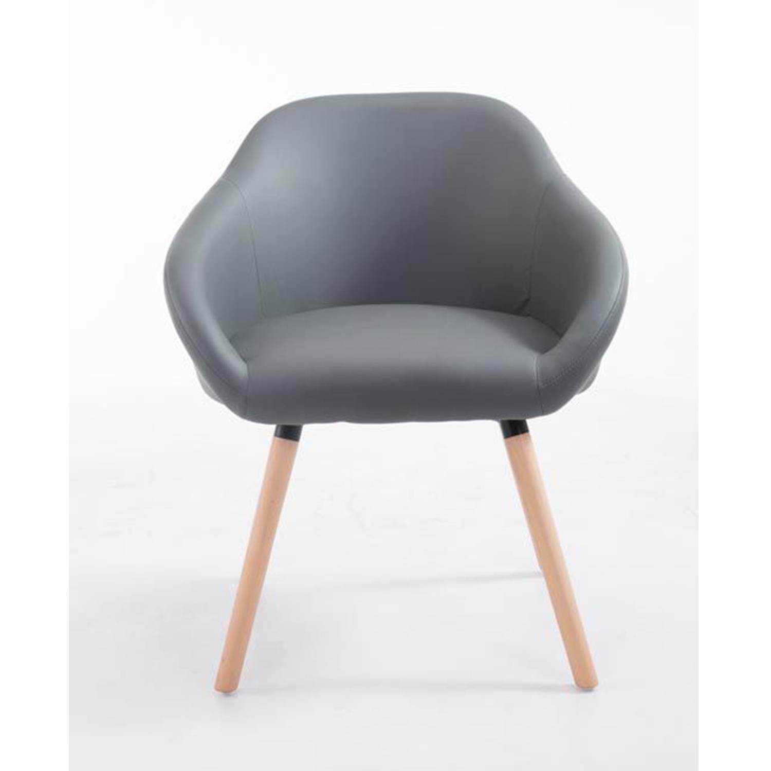 Cadeira de Visita, CINTIA, Conforto, Madeira de Carvalho Escura, Em Pele Cor Cinza