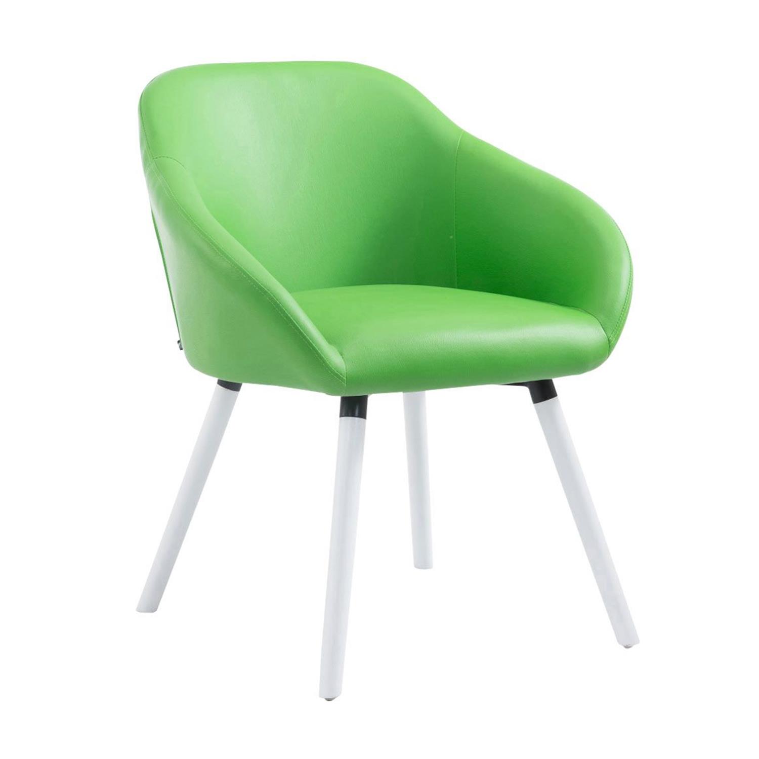 Cadeira de Visita, CINTIA, Conforto, Pernas Brancas, Em Pele Cor Verde