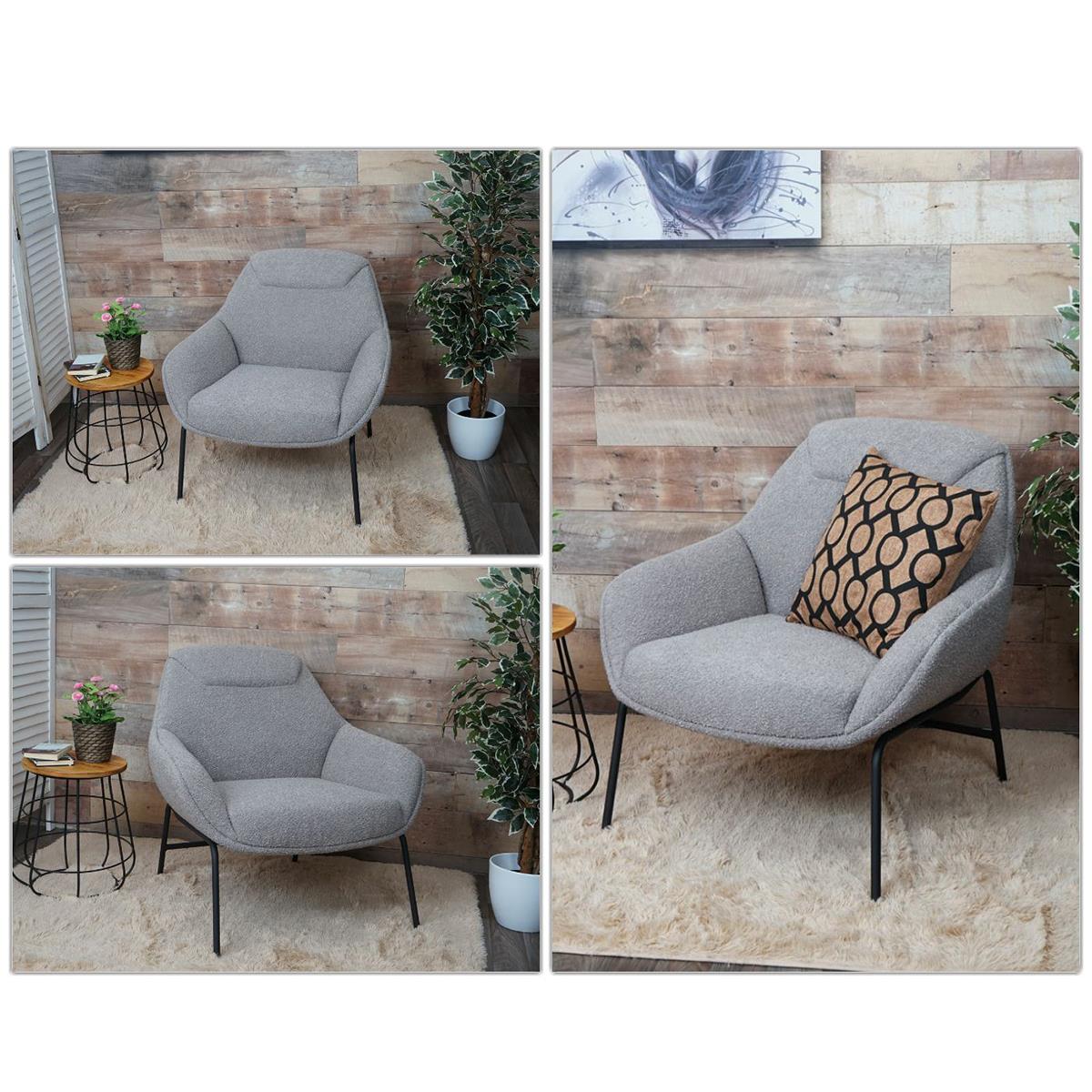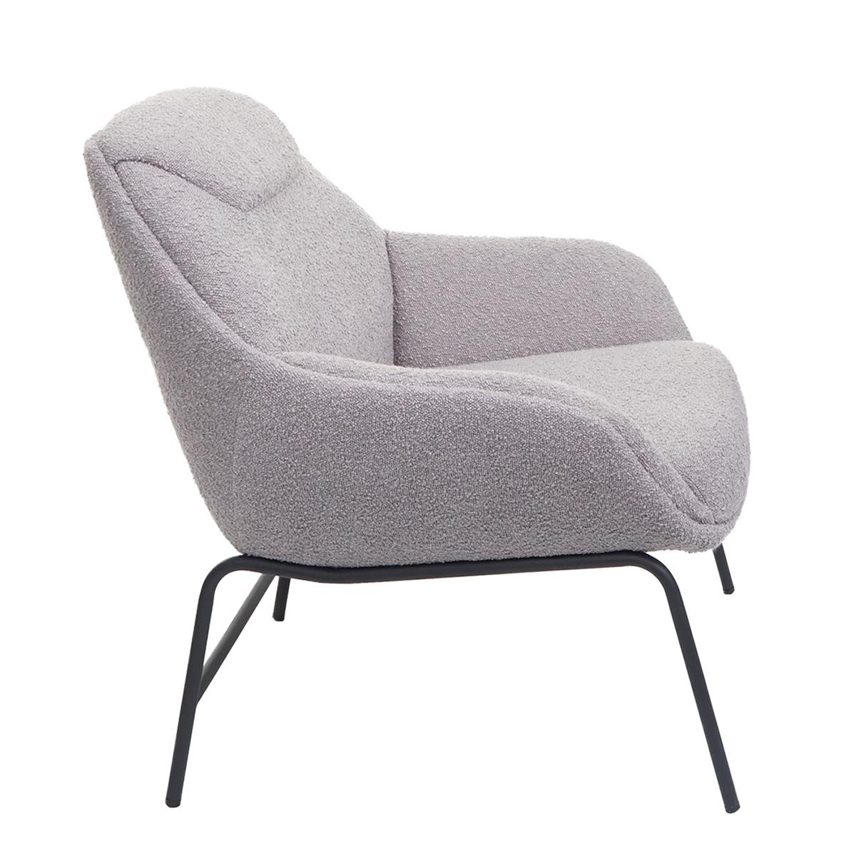 Apresenta um design moderno e envolvente, ideal para ambientes que procuram combinar estilo e conforto. A sua silhueta fluida com linhas curvas e suaves transmite uma sensação acolhedora e relaxante, enquanto o encosto ligeiramente inclinado e o apoio para braços integrados reforçam a ergonomia do assento.