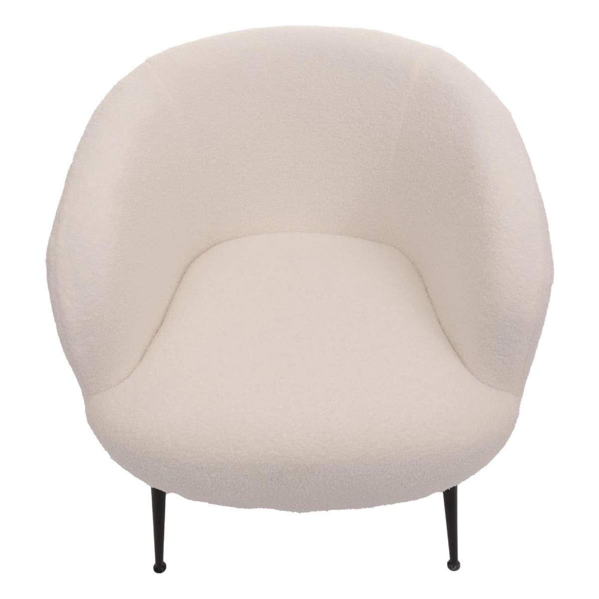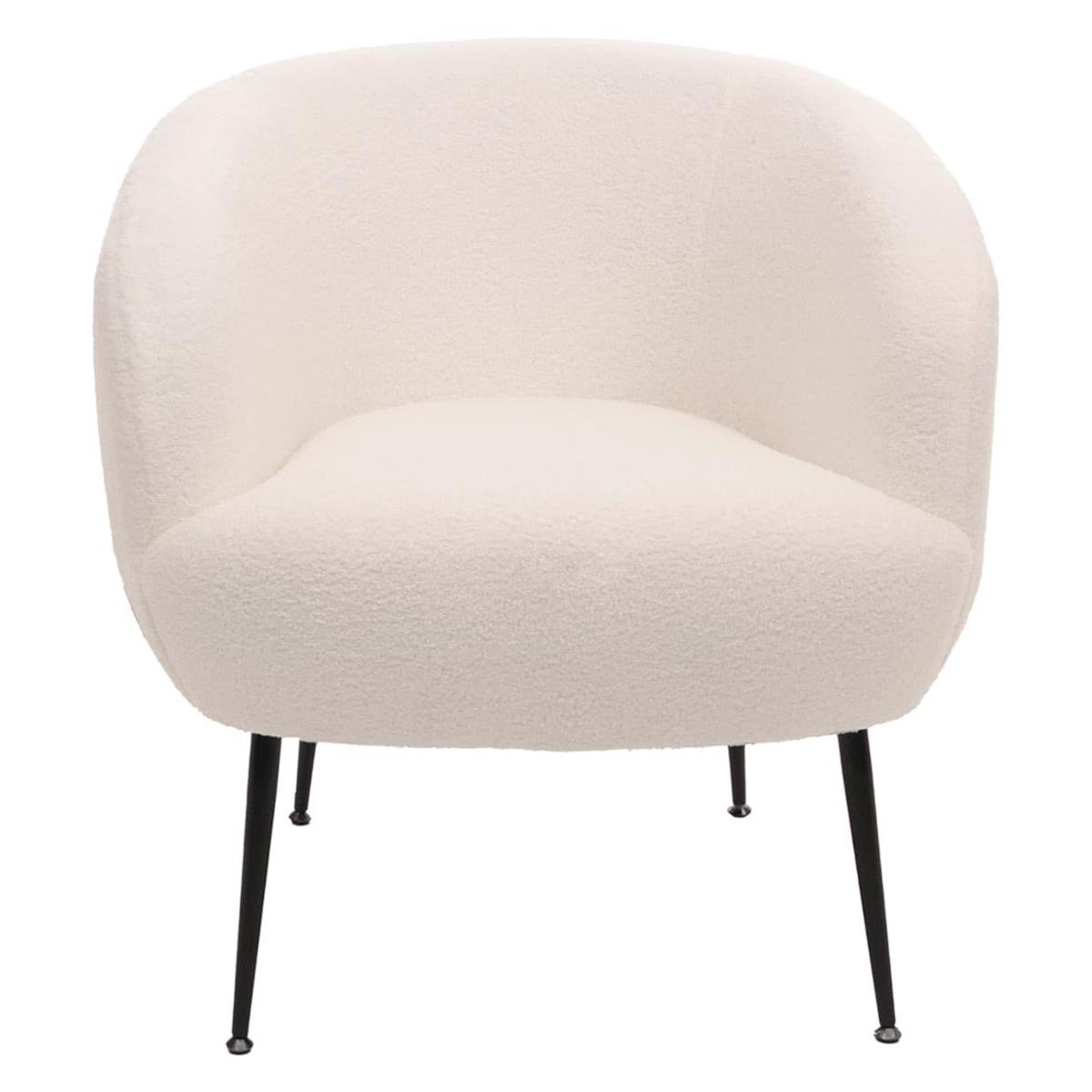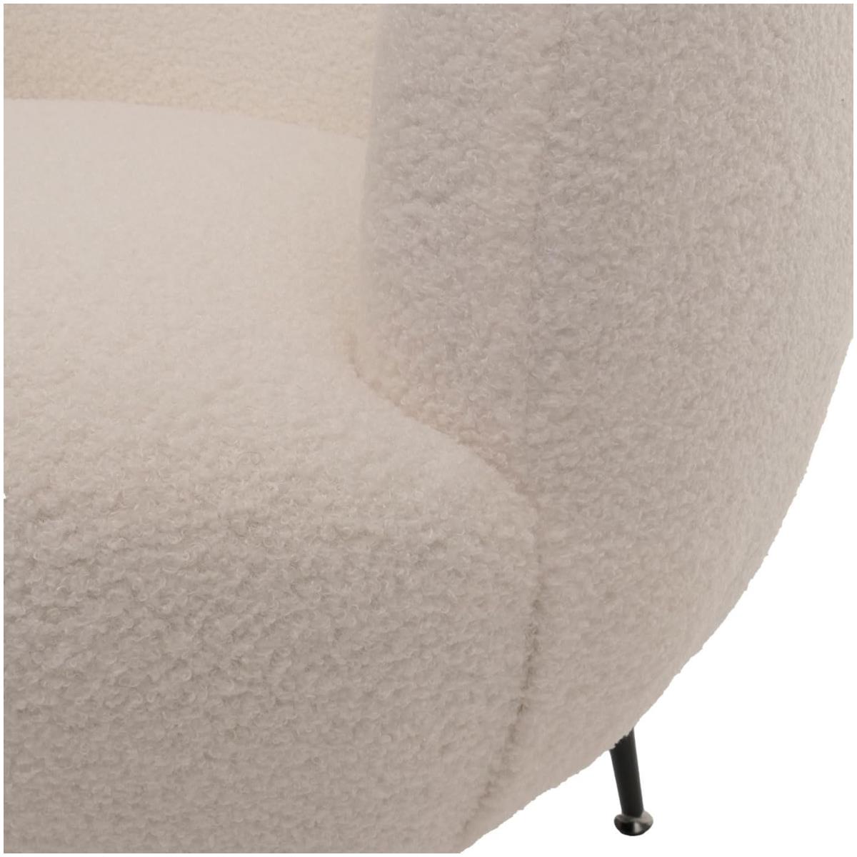A poltrona está totalmente revestida com um tecido bouclé de alta qualidade, muito suave, resistente e fácil de limpar. As pernas são de ferro robusto e cor preta, o que permite suportar uma carga até 120 kg. Além do mais, está equipada com pés anti-deslizantes para proporcionar uma maior estabilidade ao sentar-se e evitar danos na superfície onde se coloca. Foi prestada atenção ao mínimo detalhe na construção deste produto.