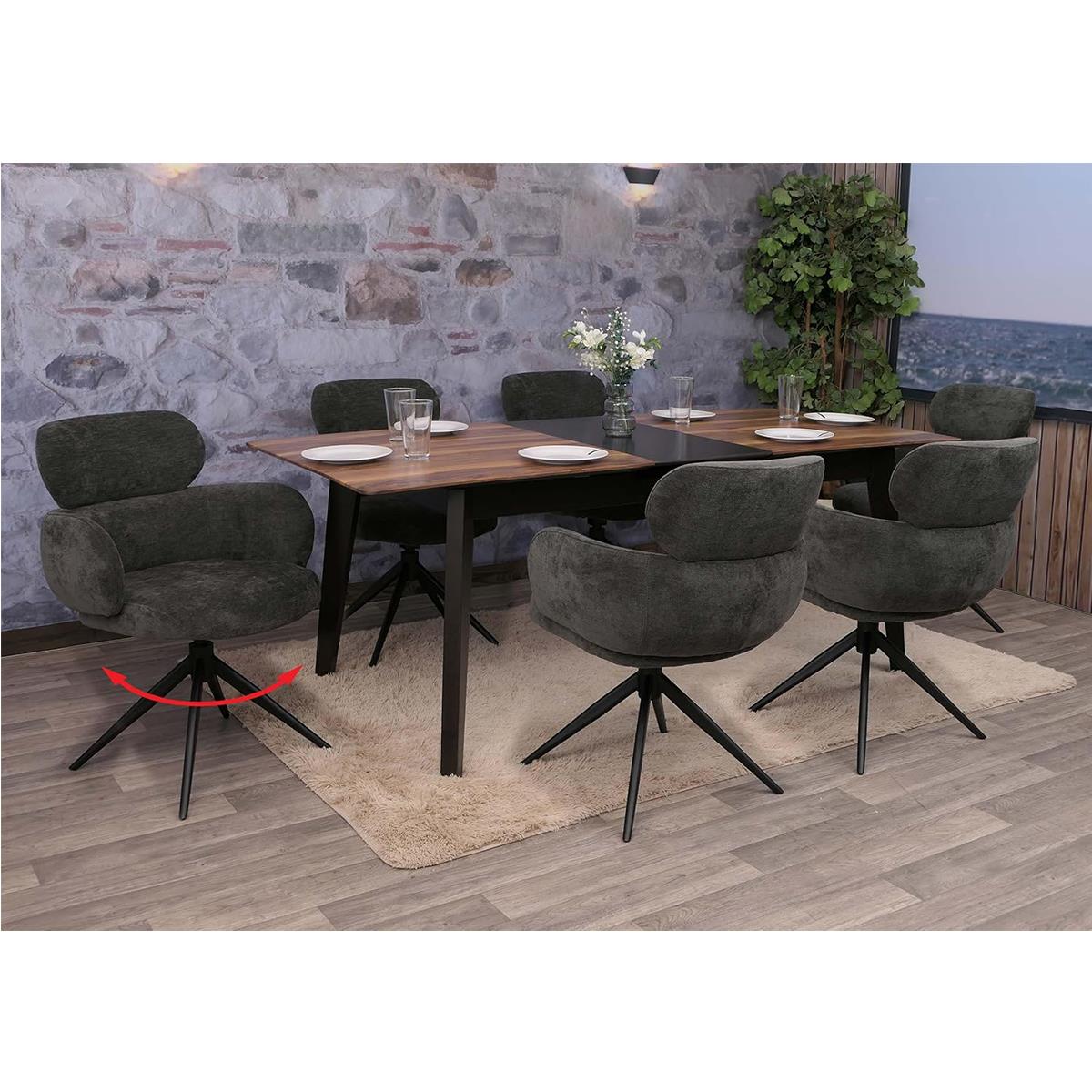Trata-se de uma cadeira fabricada com materiais de qualidade. Os apoios de braços são acolchoados e as bordas delicadamente arredondadas oferecem um fator adicional de comodidade, criando um design harmonioso que se integra com estilo em qualquer ambiente. Este modelo prático também é 360º giratório, tornando-o numa opção versátil que inclusivamente pode servir como cadeira de escritório.