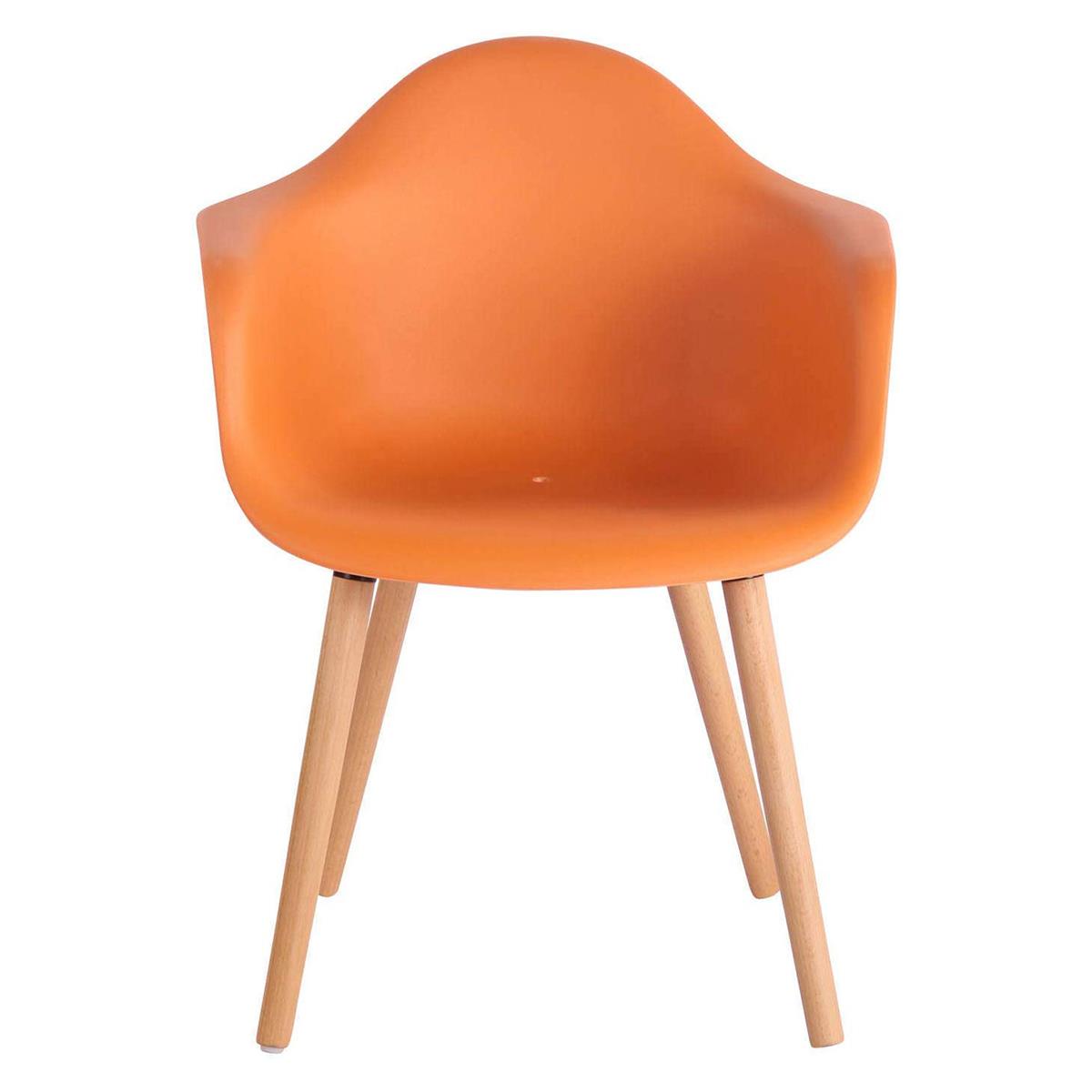 Cadeira de Visita MARA, Design Cómodo, Pernas de Madeira Clara, Cor Laranja