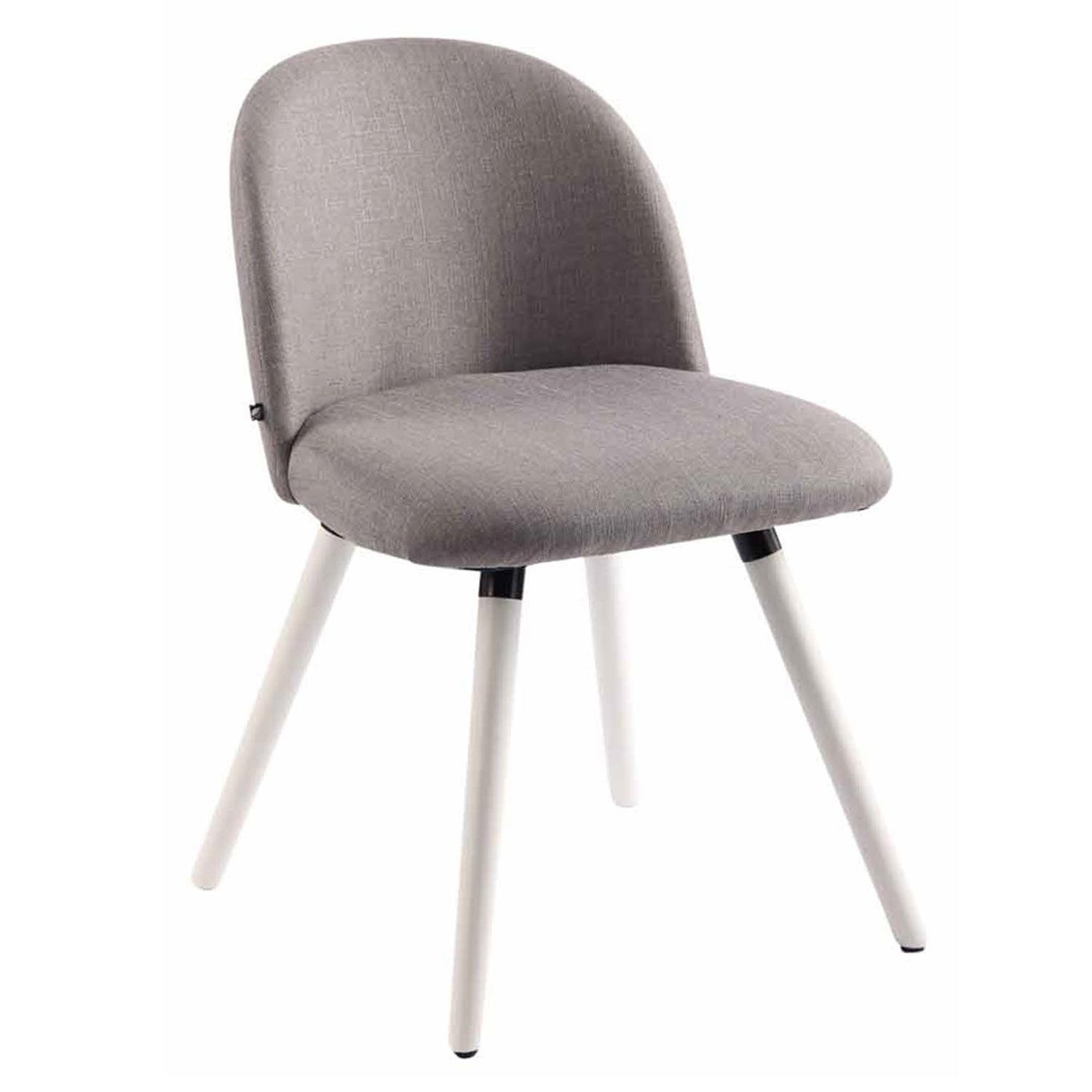 Cadeira de Visita, MINA, Pernas de Madeira Branca, em Tecido, Cor Cinzento Claro