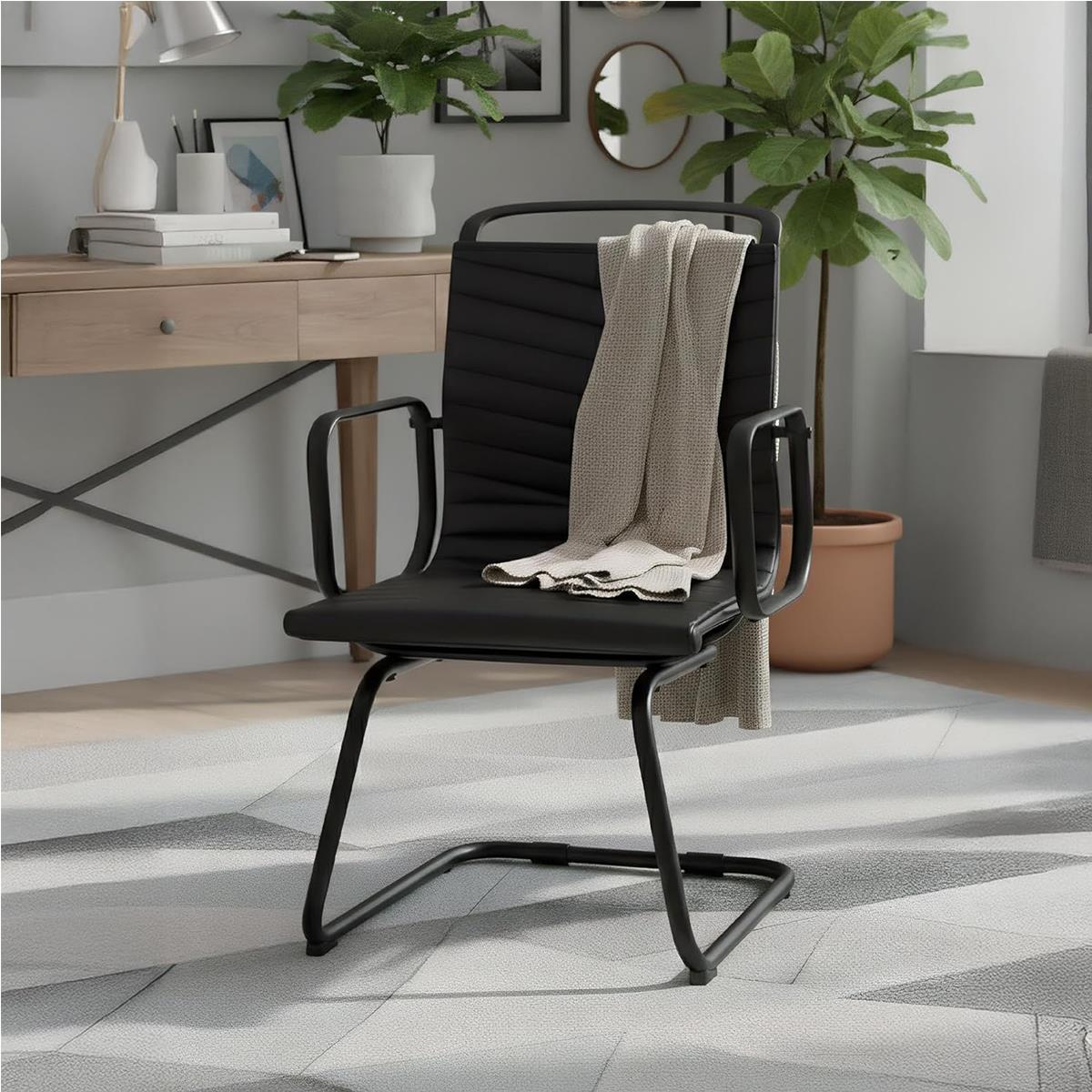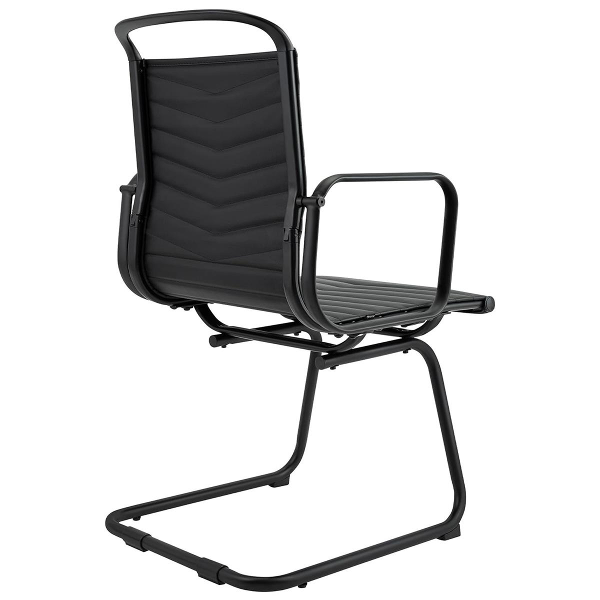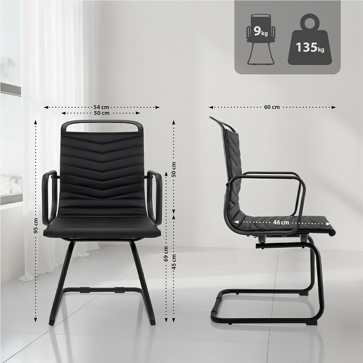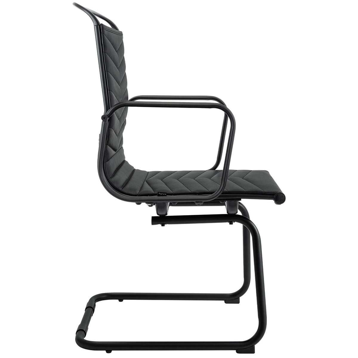 Cadeira de Visita NIUTAL, Design Moderno, Estrutura Metálica, em Pele Cor Negro