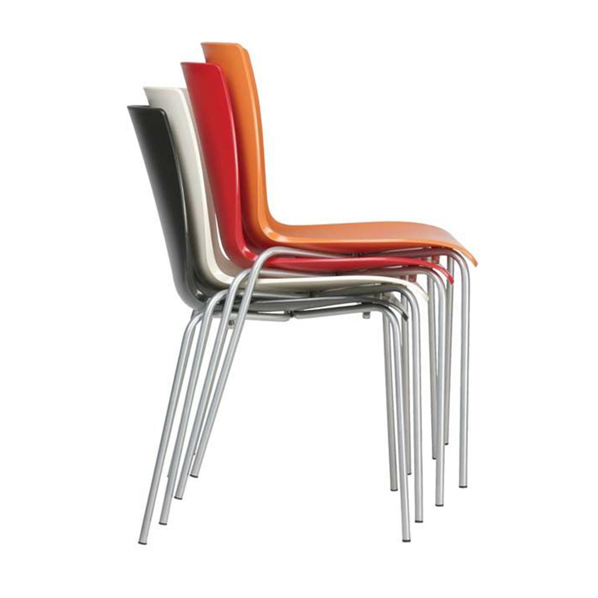 É uma cadeira preparada para um uso diário intensivo graças à elevada qualidade dos seus materiais. Dispõe de uma estrucura metálica resistente que garante estabilidade. Os restantes constituintes são fabricados em plástico duplo e têm a vantagem da sua fácil limpeza e manutenção.