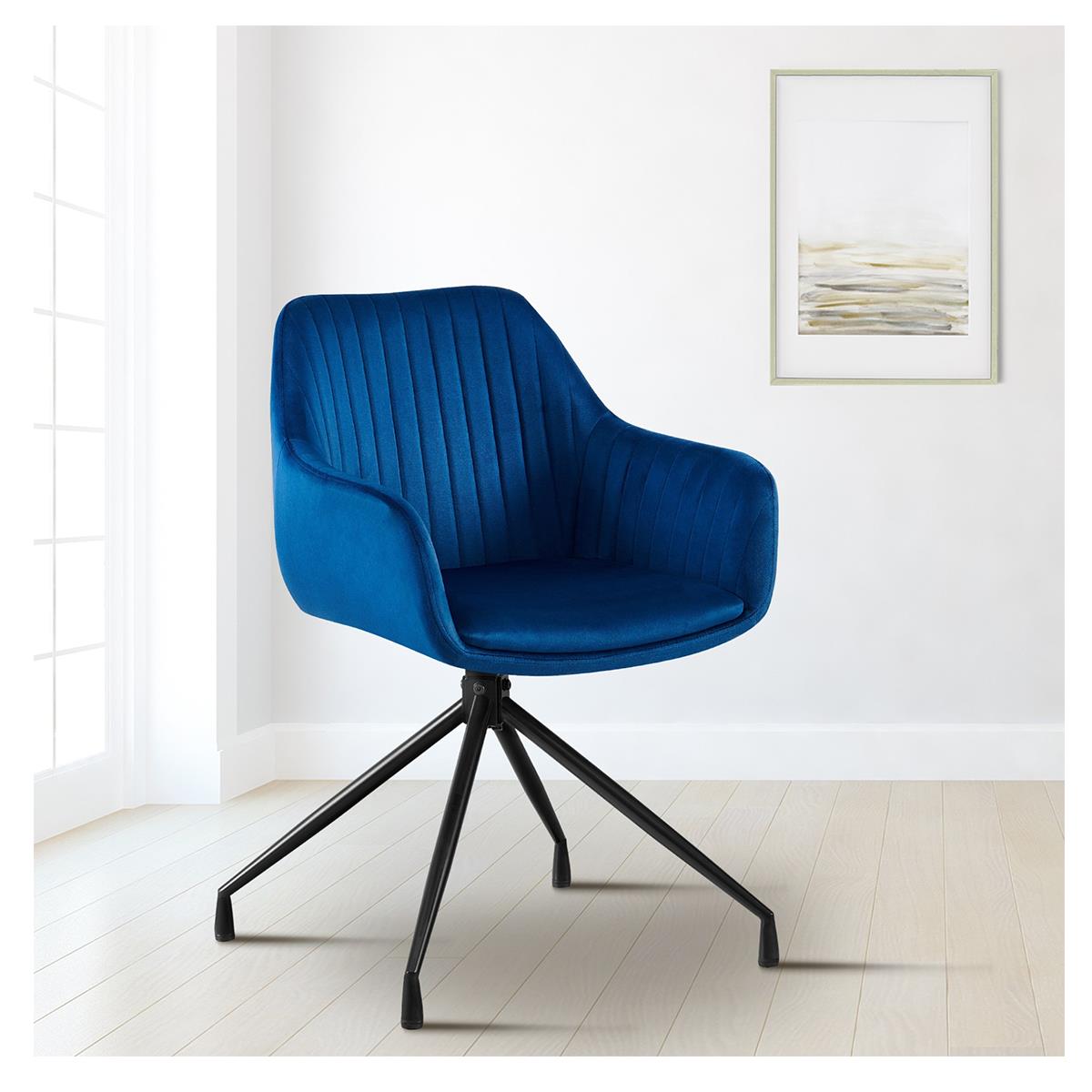 Cadeira de Visita TANNER, Design Moderno, Giratória, Pernas Metálicas, em Veludo, Cor Azul