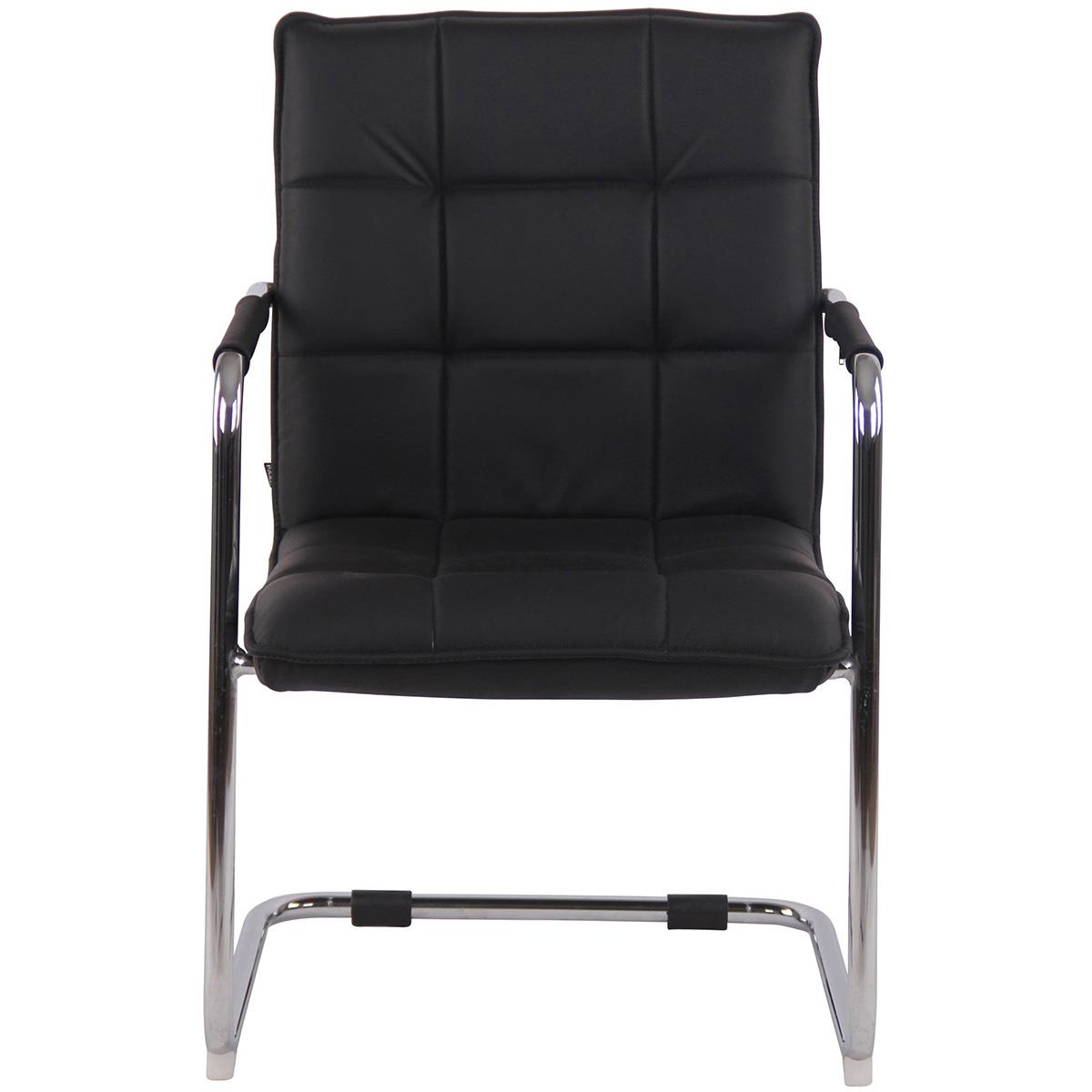 Cadeira de Visita TORRES, Estructura Metálica, Cromado Elegante, Em Pele Verdadeira, Preto
