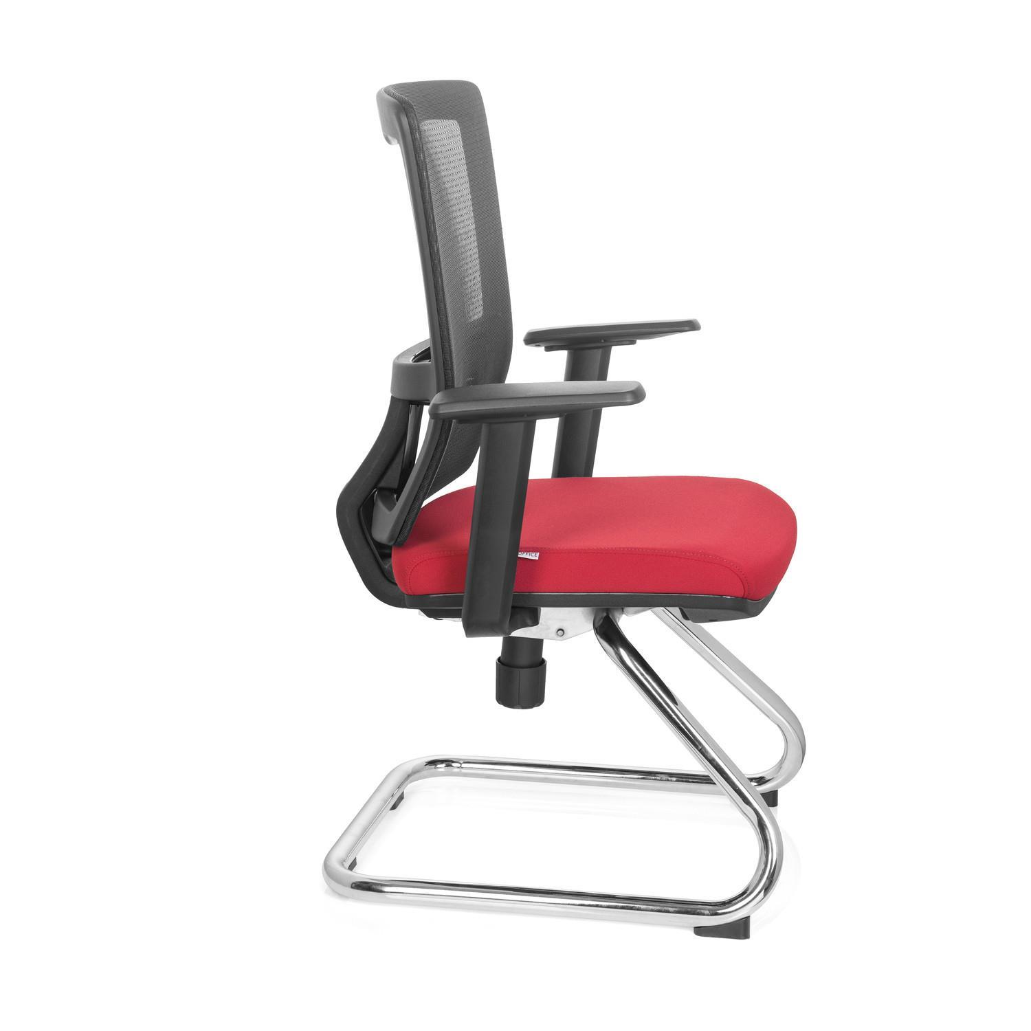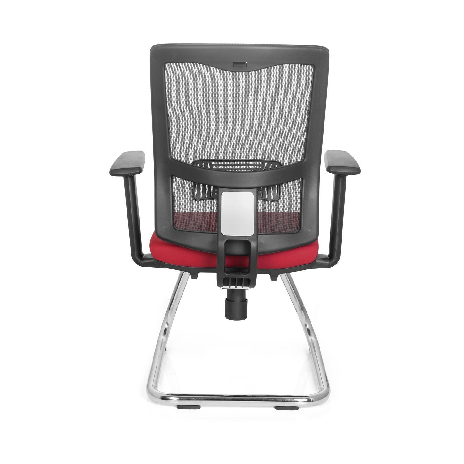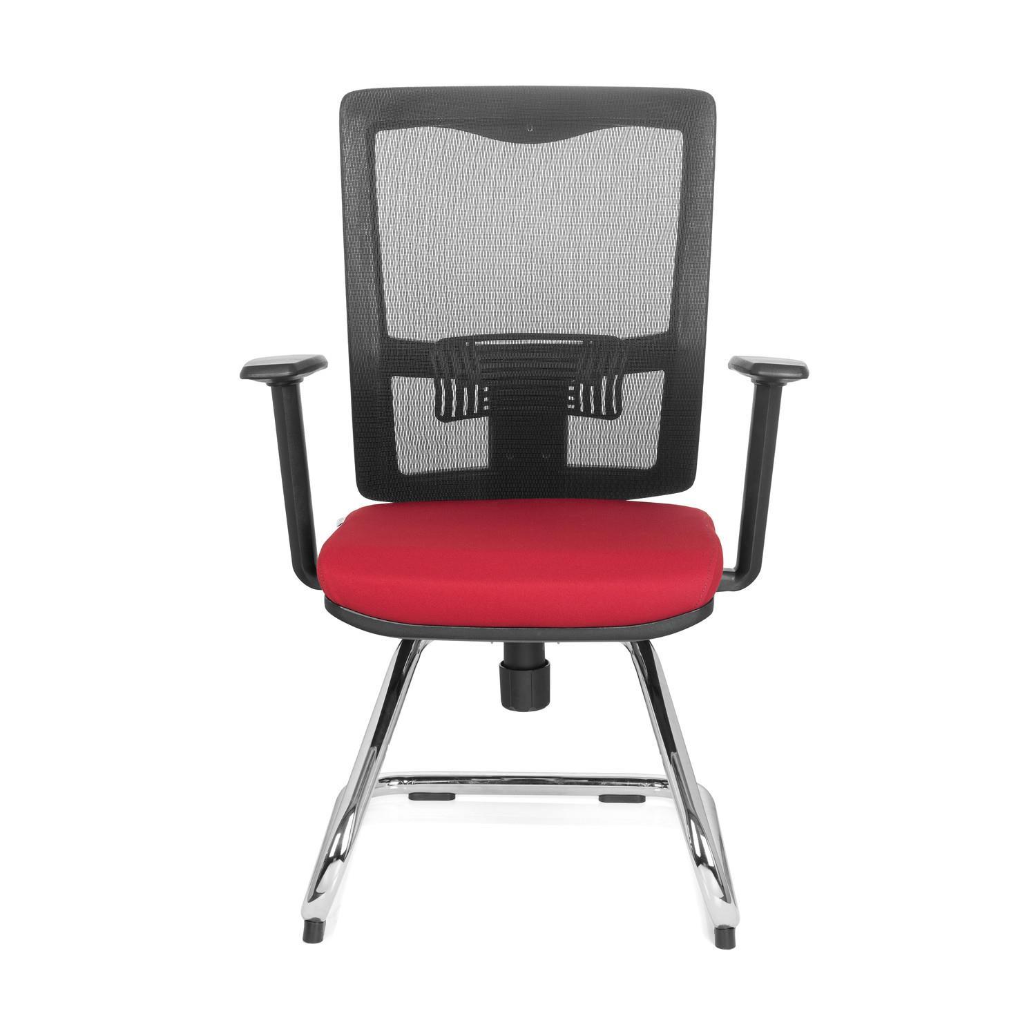 Cadeira de Visita UDINE V, Suporte Lombar, Em Malha Respirável e Pano, Cor Vermelho Vermelho