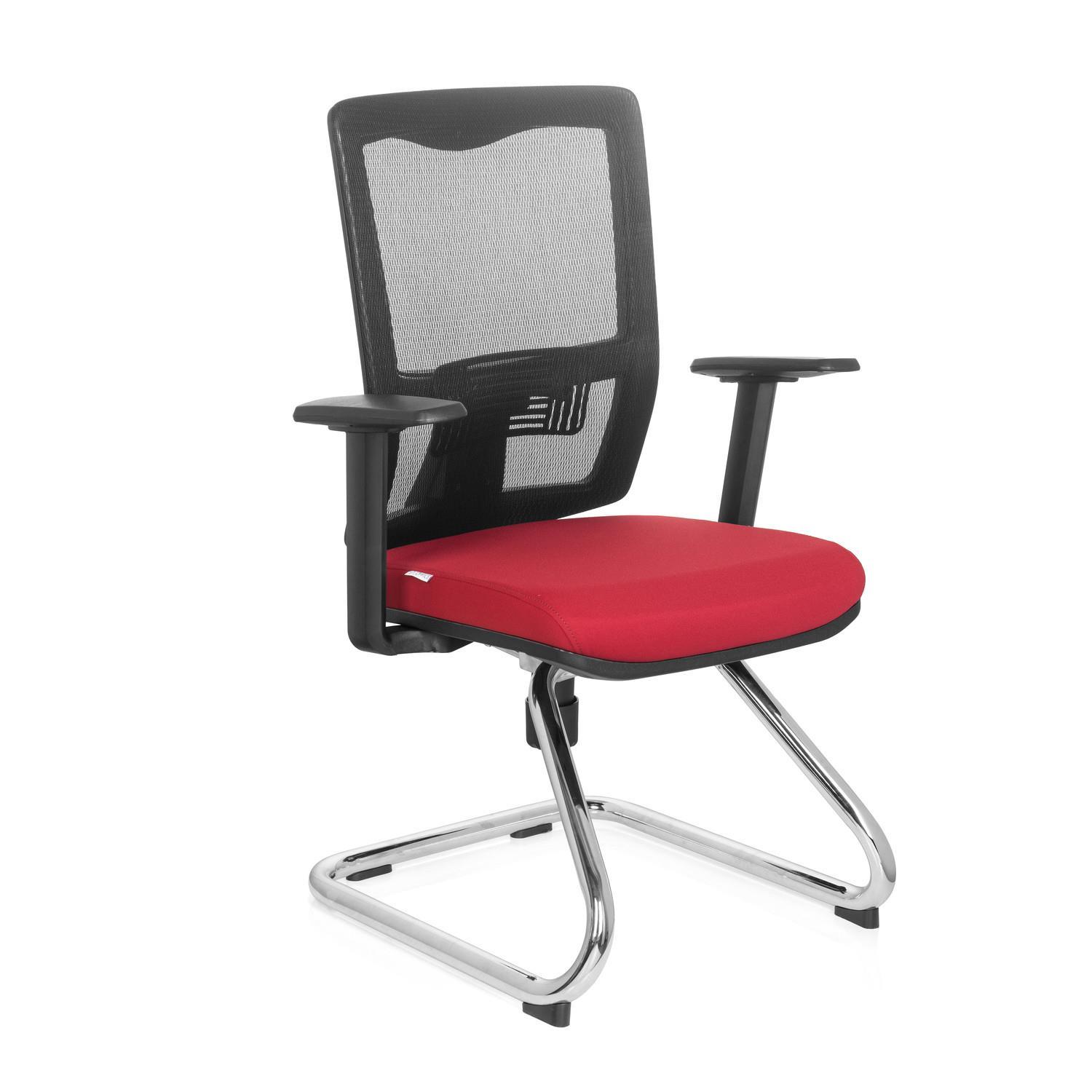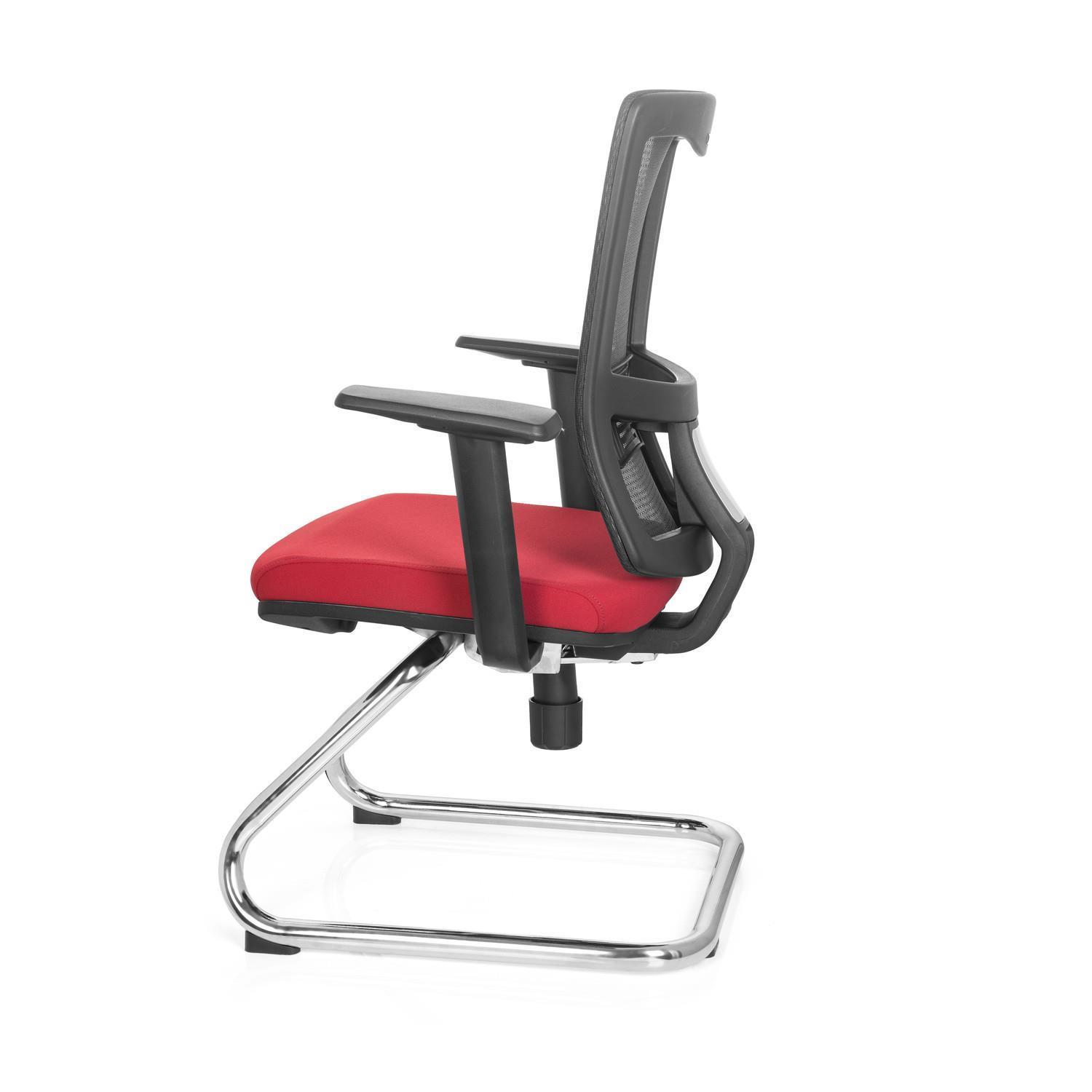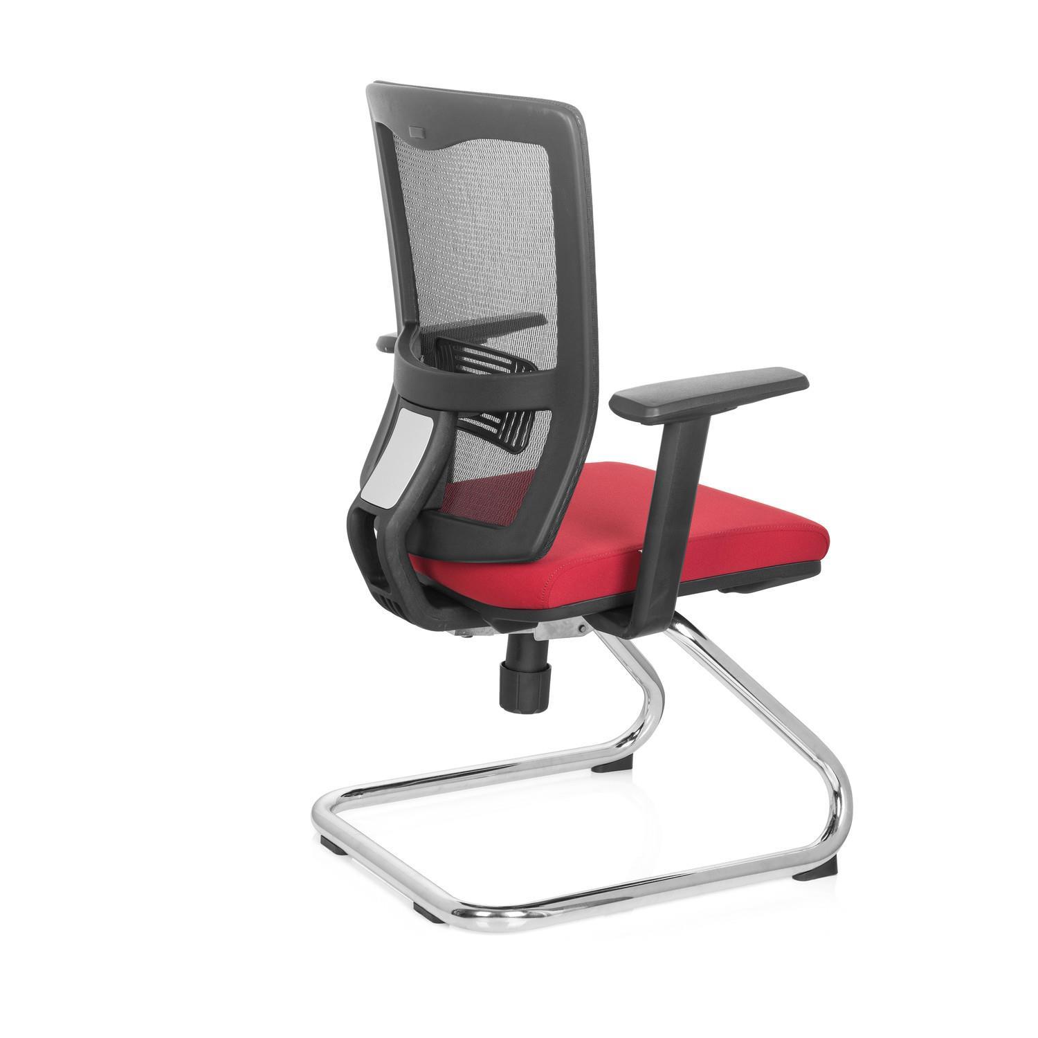 Cadeira de Visita UDINE V, Suporte Lombar, Em Malha Respirável e Pano, Cor Vermelho Vermelho