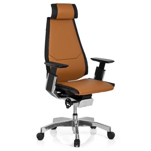 Cadeira Ergonómica HADES, Totalmente Ajustável, Design Moderno, em Pele Castanho Claro