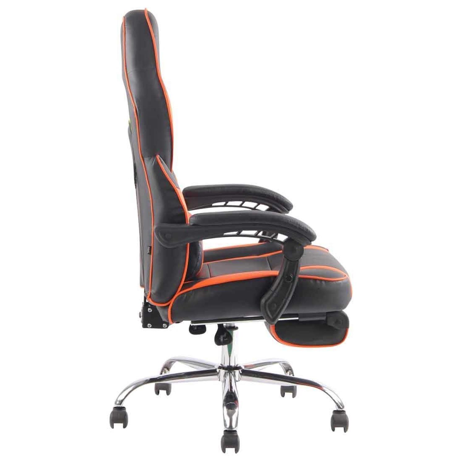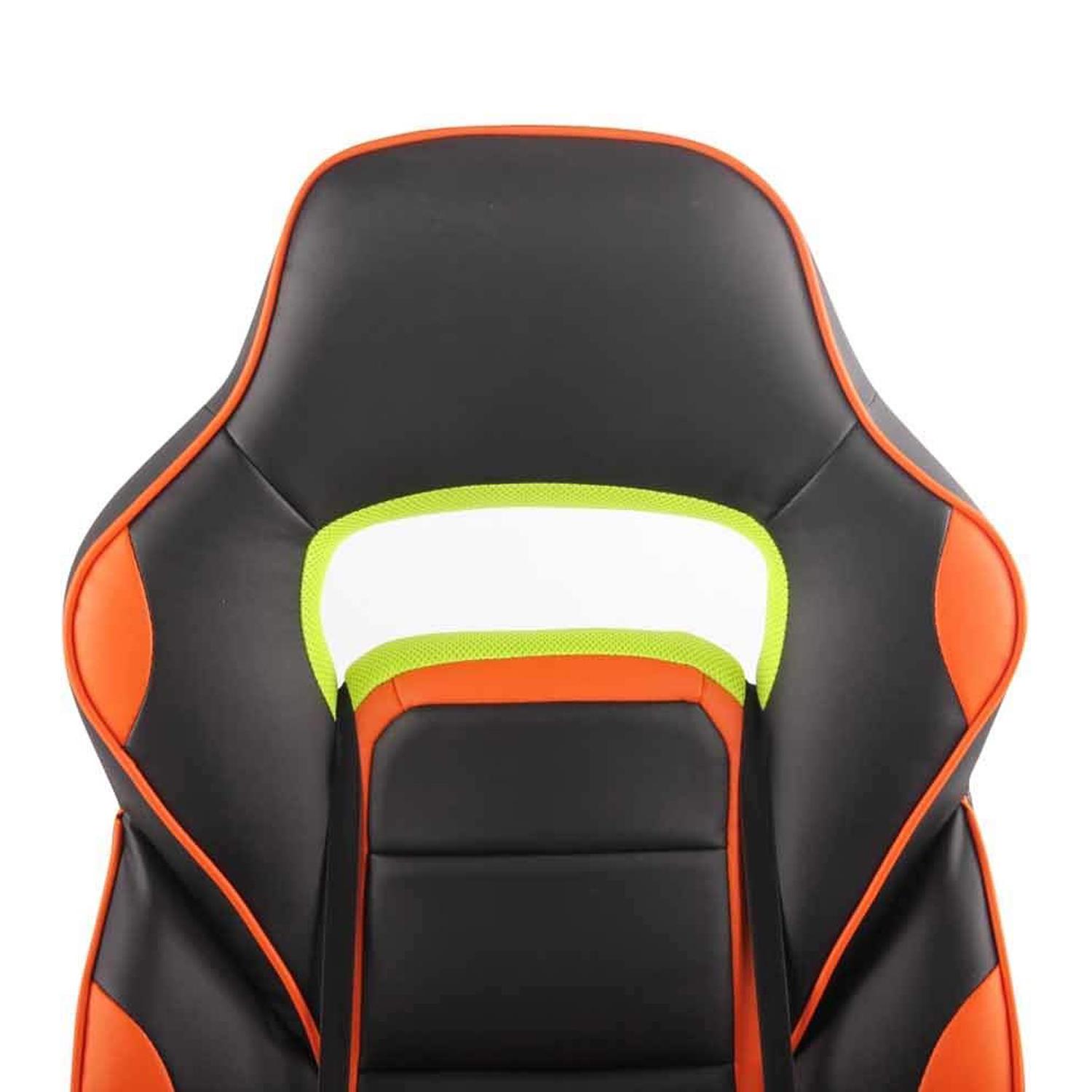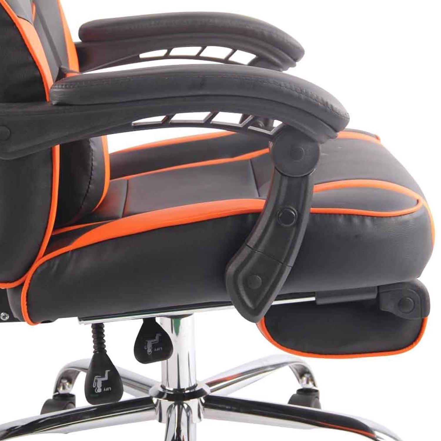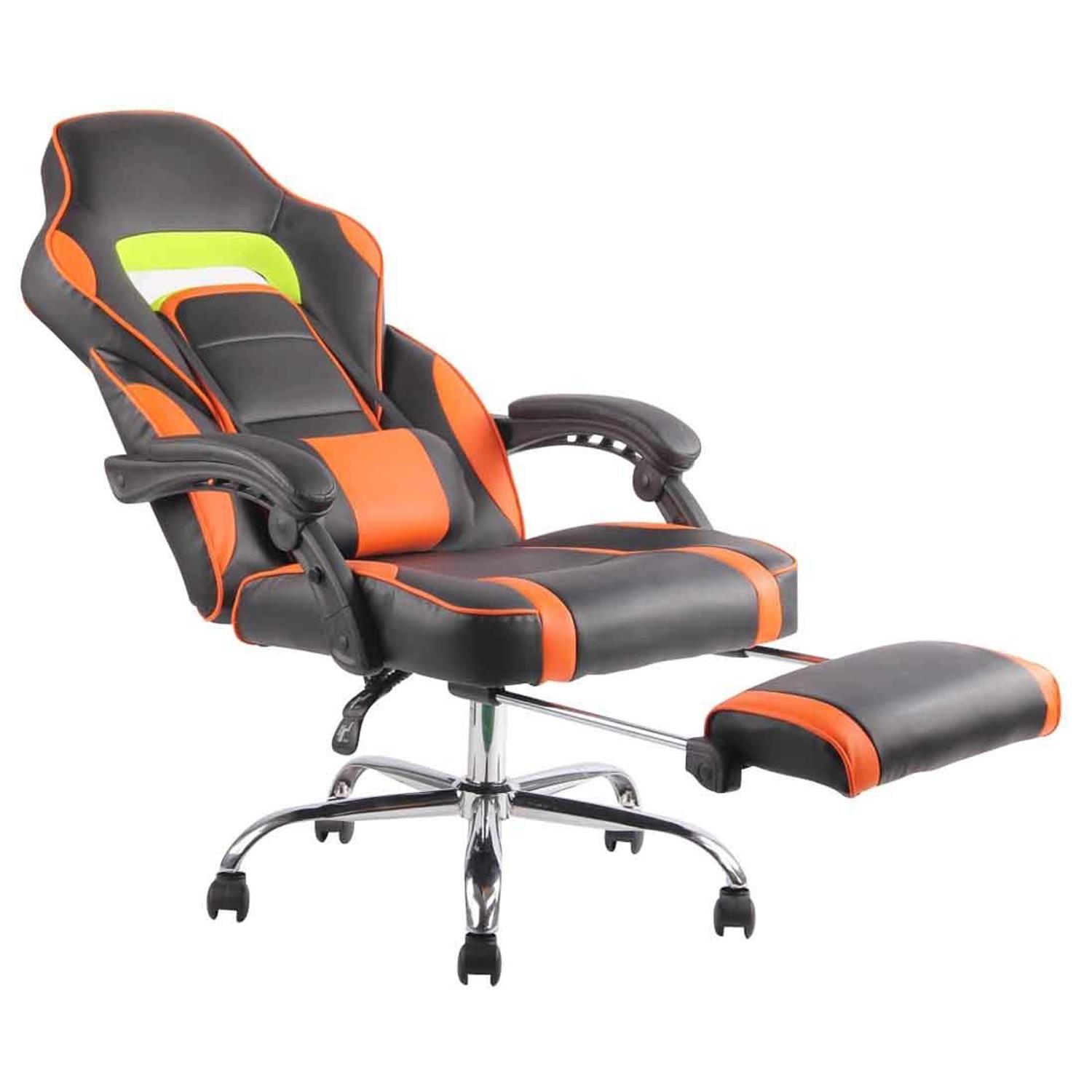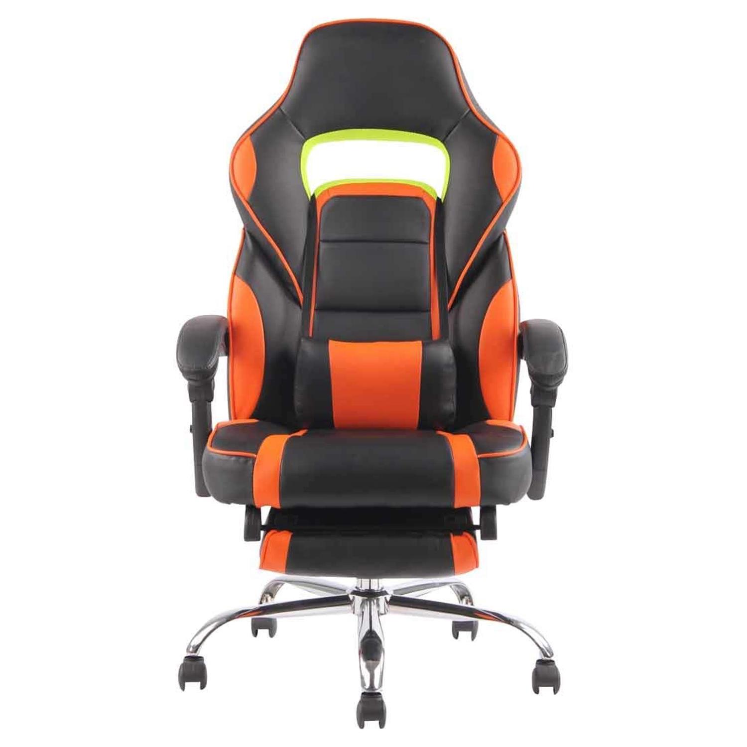 Cadeira Gaming LISTER, Apoia Pés Extensível, Almofada Lombar, Em Pele, Preto e Laranja