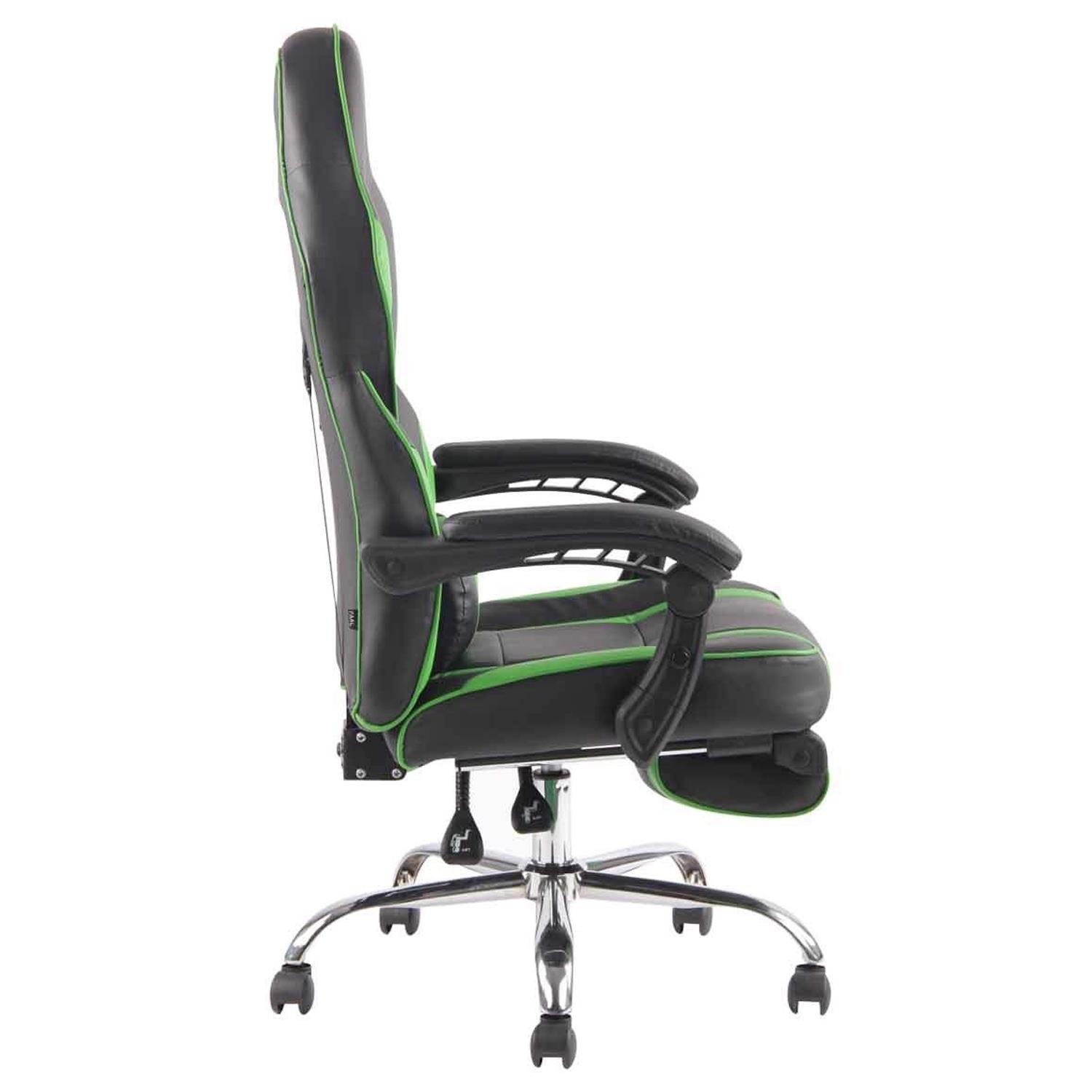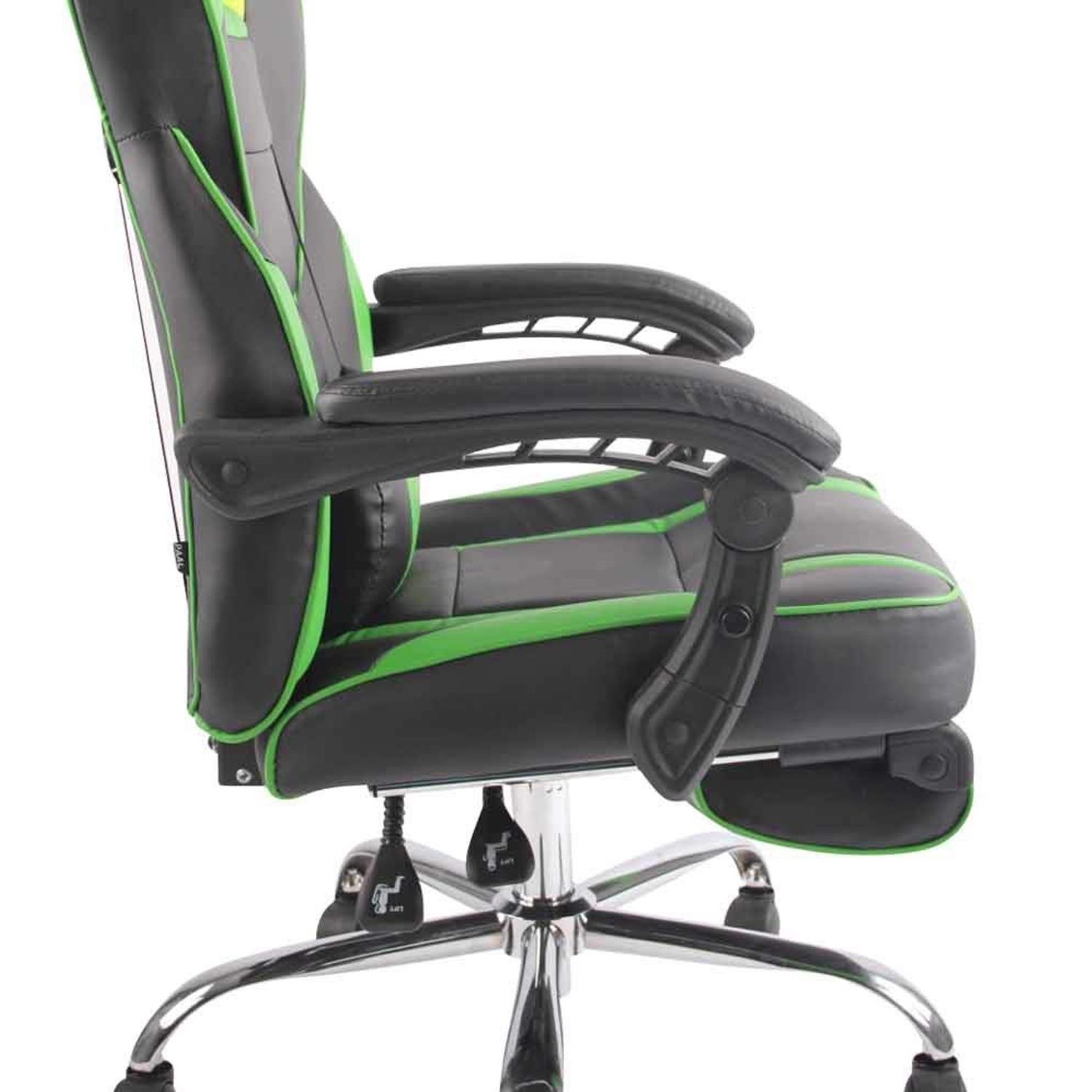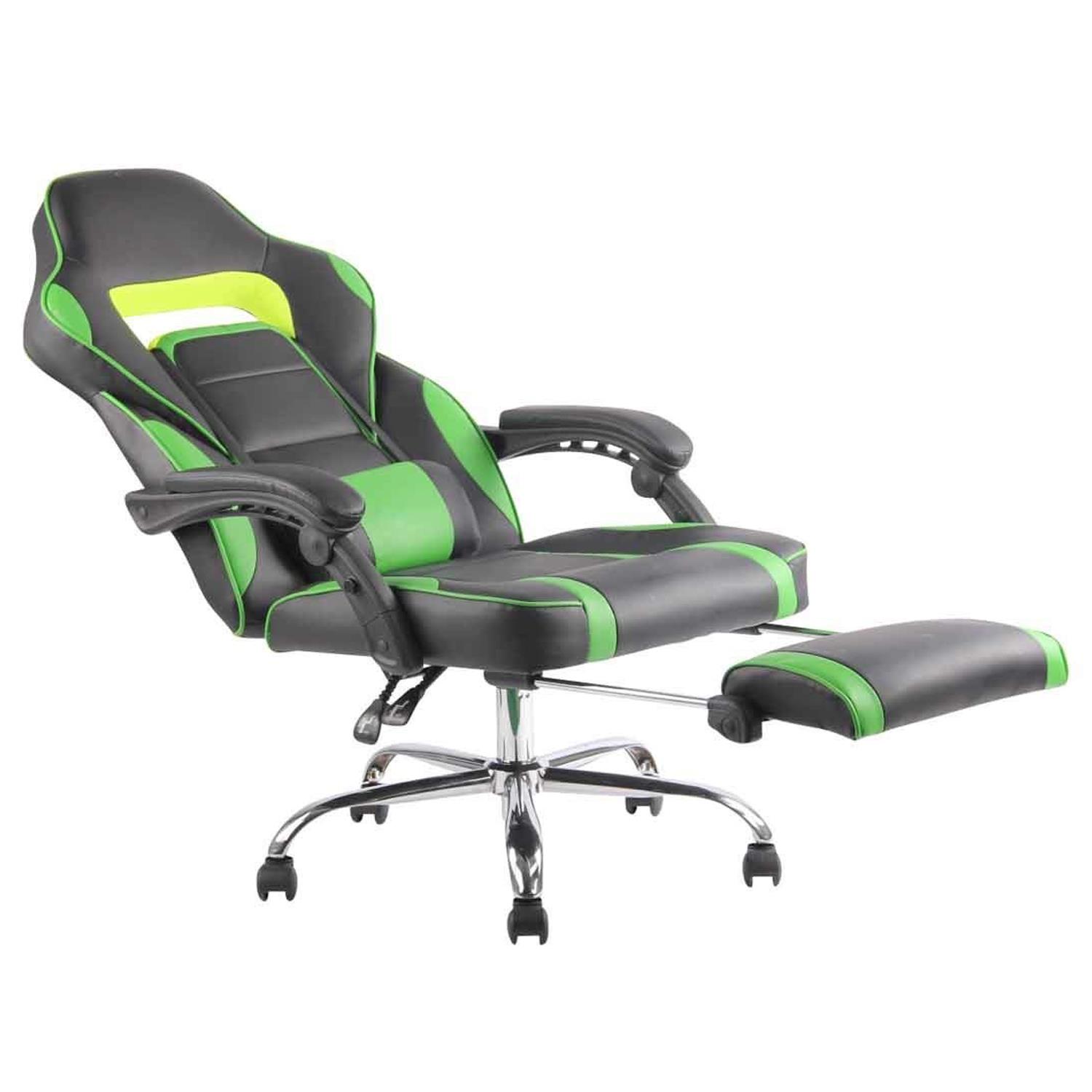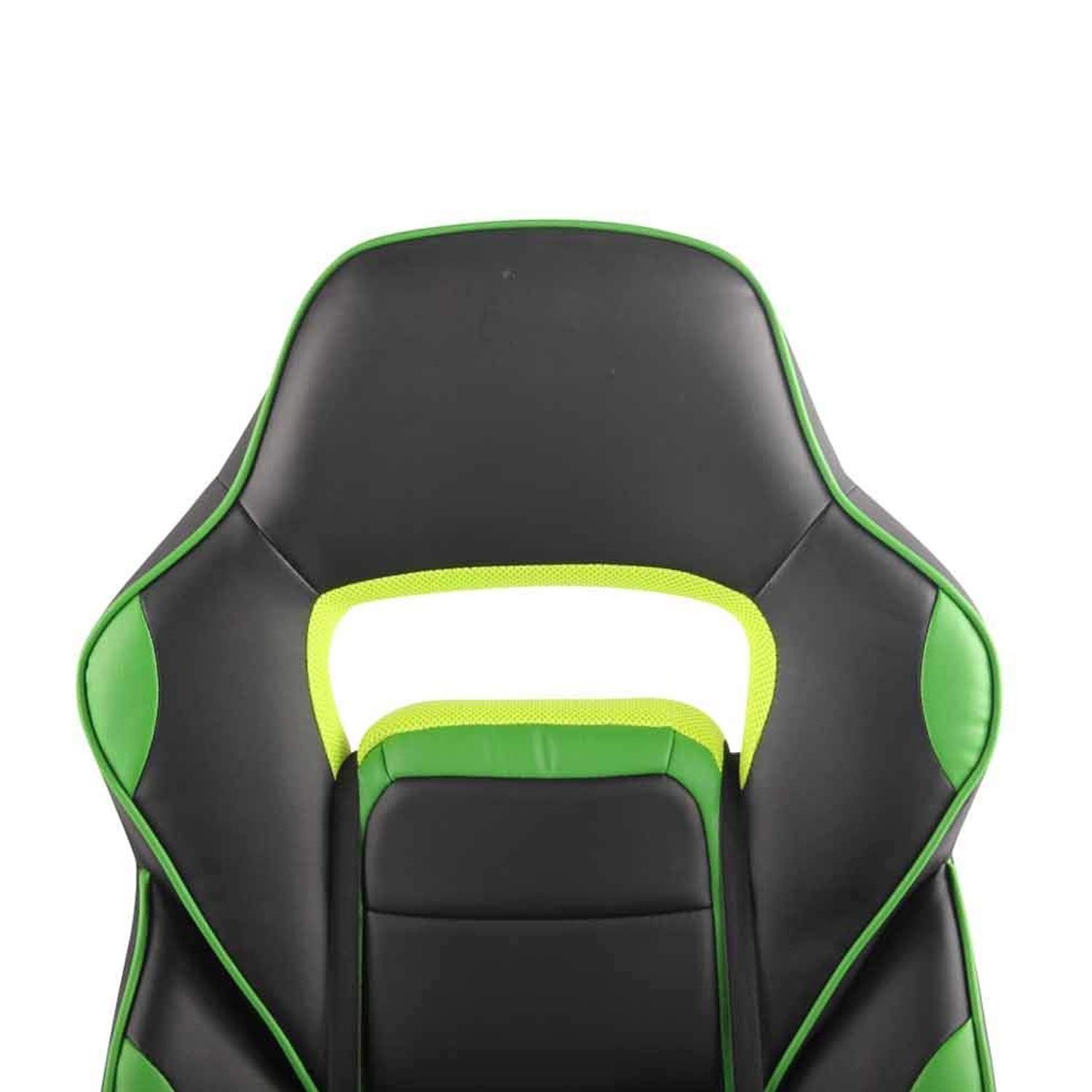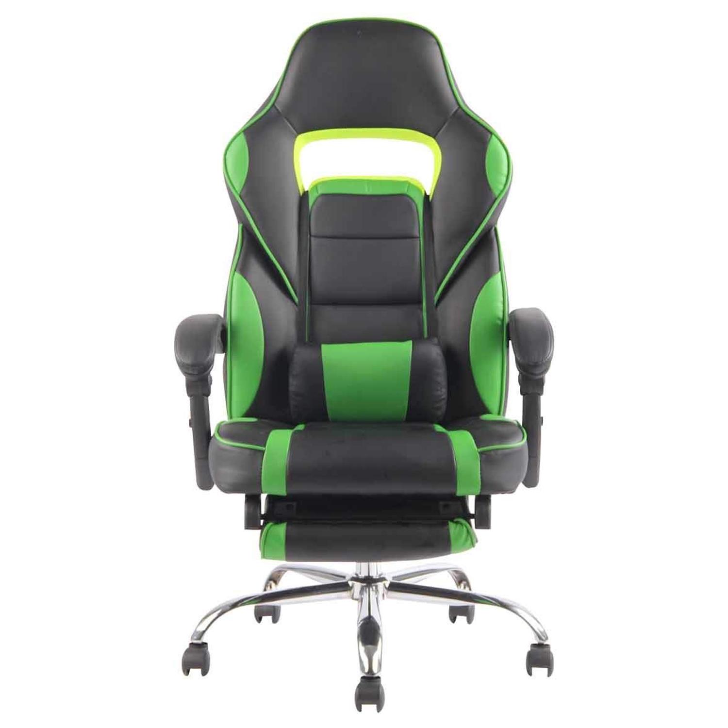Cadeira Gaming LISTER, Apoia Pés Extensível, Almofada Lombar, Em Pele, Preto e Verde