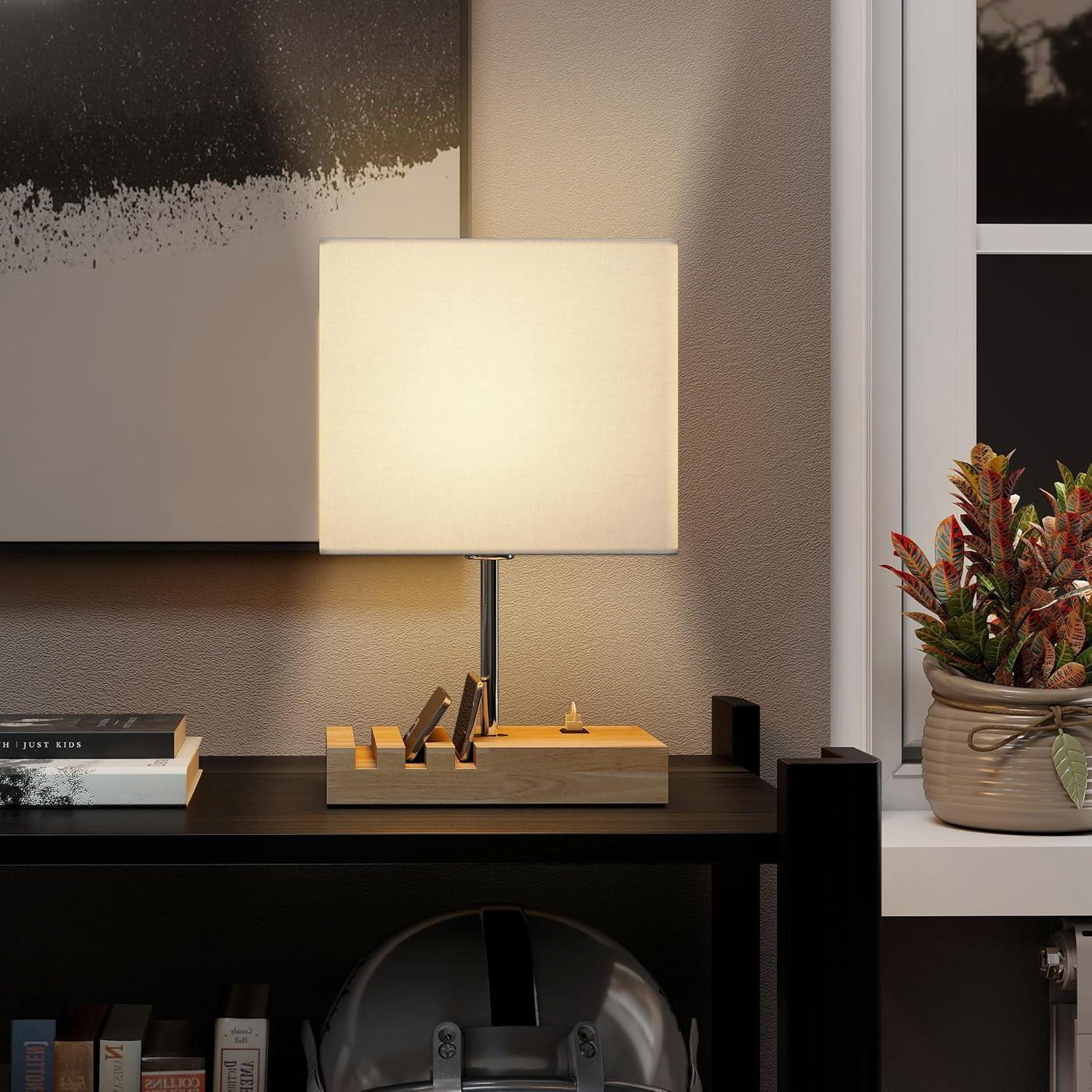 Dê um toque elegante e acolhedor ao espaço onde o colocar com este candeeiro de design contemporâneo. A base em madeira natural, de linhas minimalistas, acrescenta carácter e personalidade, enquanto o abat-jour quadrado em tom neutro proporciona uma iluminação suave e confortável, perfeita para criar ambientes convidativos.