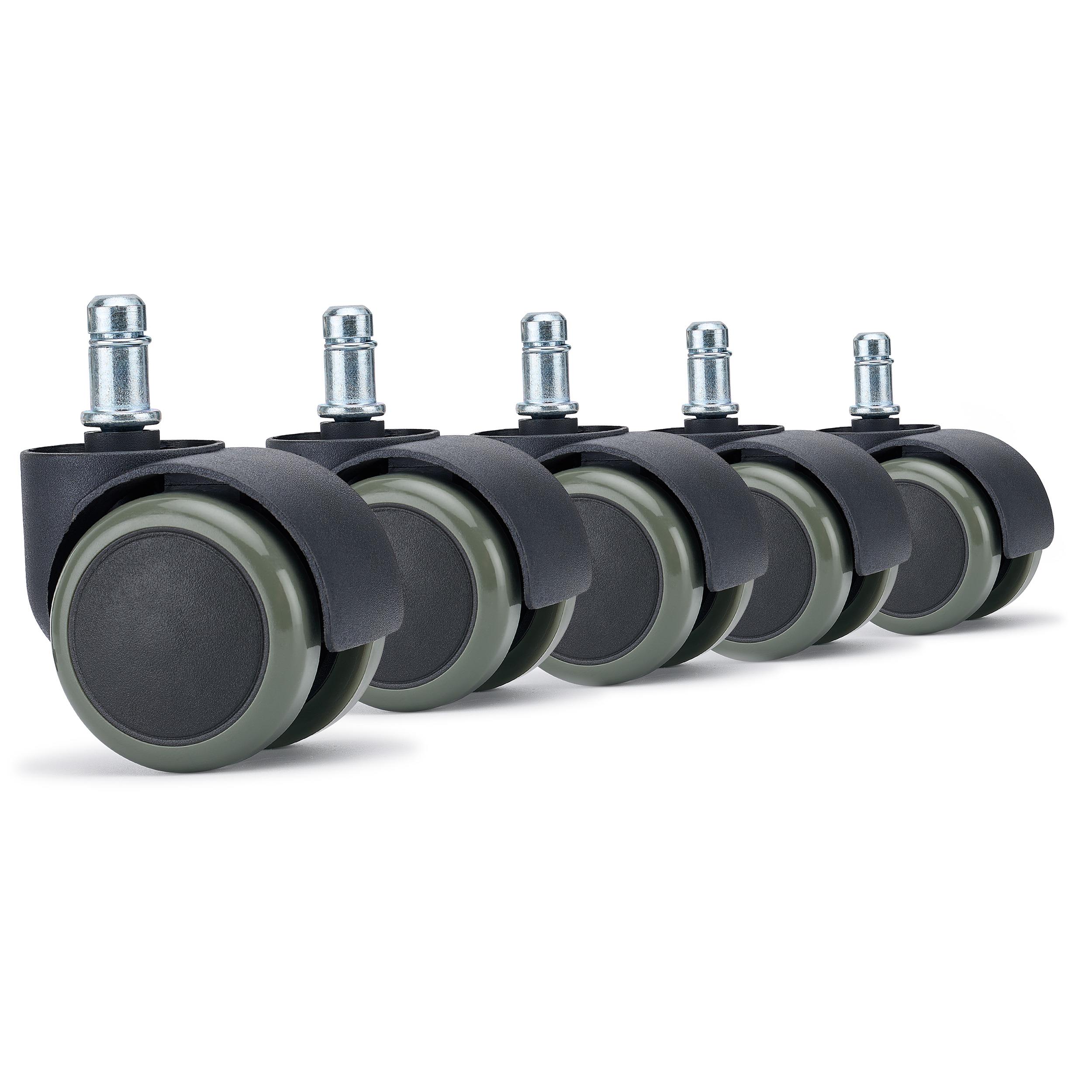 Conjunto de 5 rodas para Cadeiras de Escritório ROLL 11x50 mm, com Travão de Segurança Integrado, Cor Cinzento