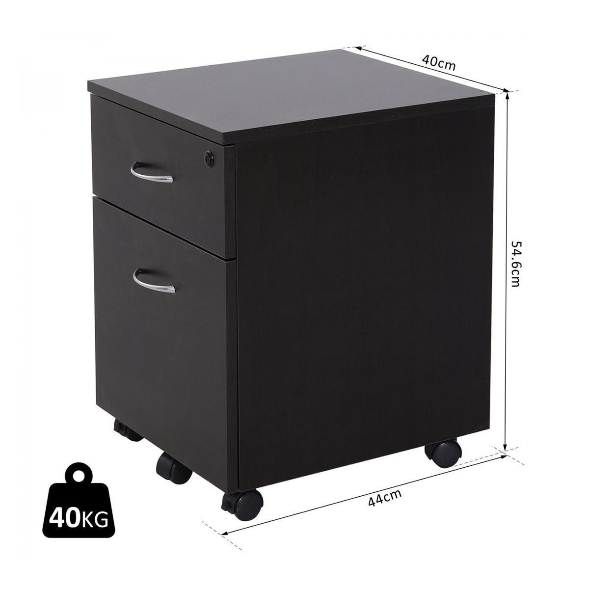 DEMO# Arquivador Com Rodas JANE, 2 Gavetas, Dimensões 40x44x54.6 cm, Madeira, Cor Preto