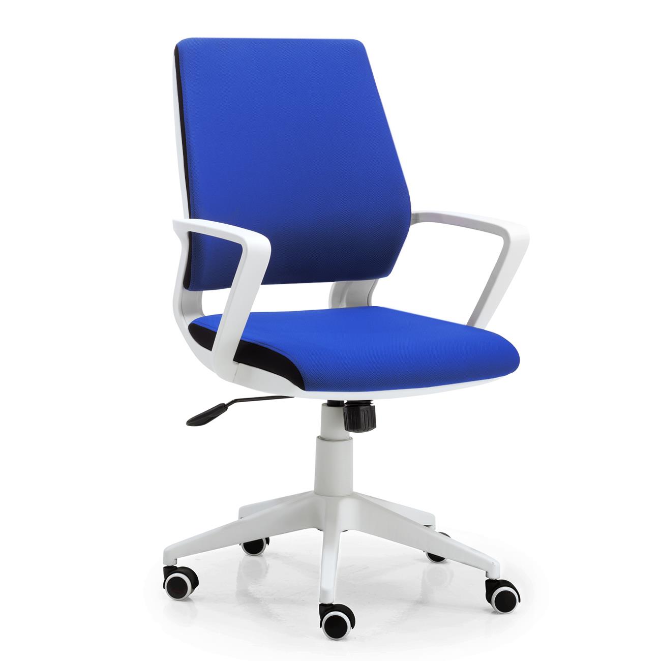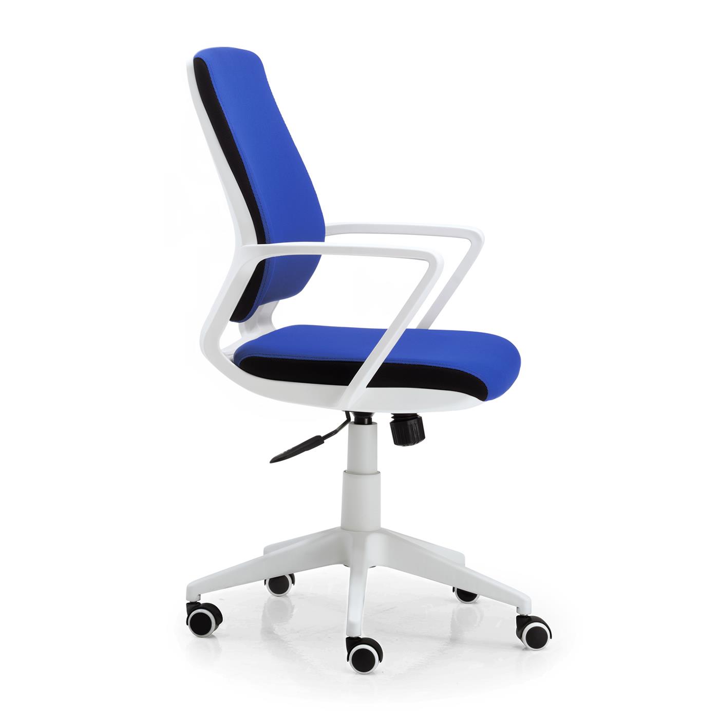 DEMO# Cadeira de Escritório IRMA, Estrutura Branca, Mecanismo de Balanço, Em Pano, Azul