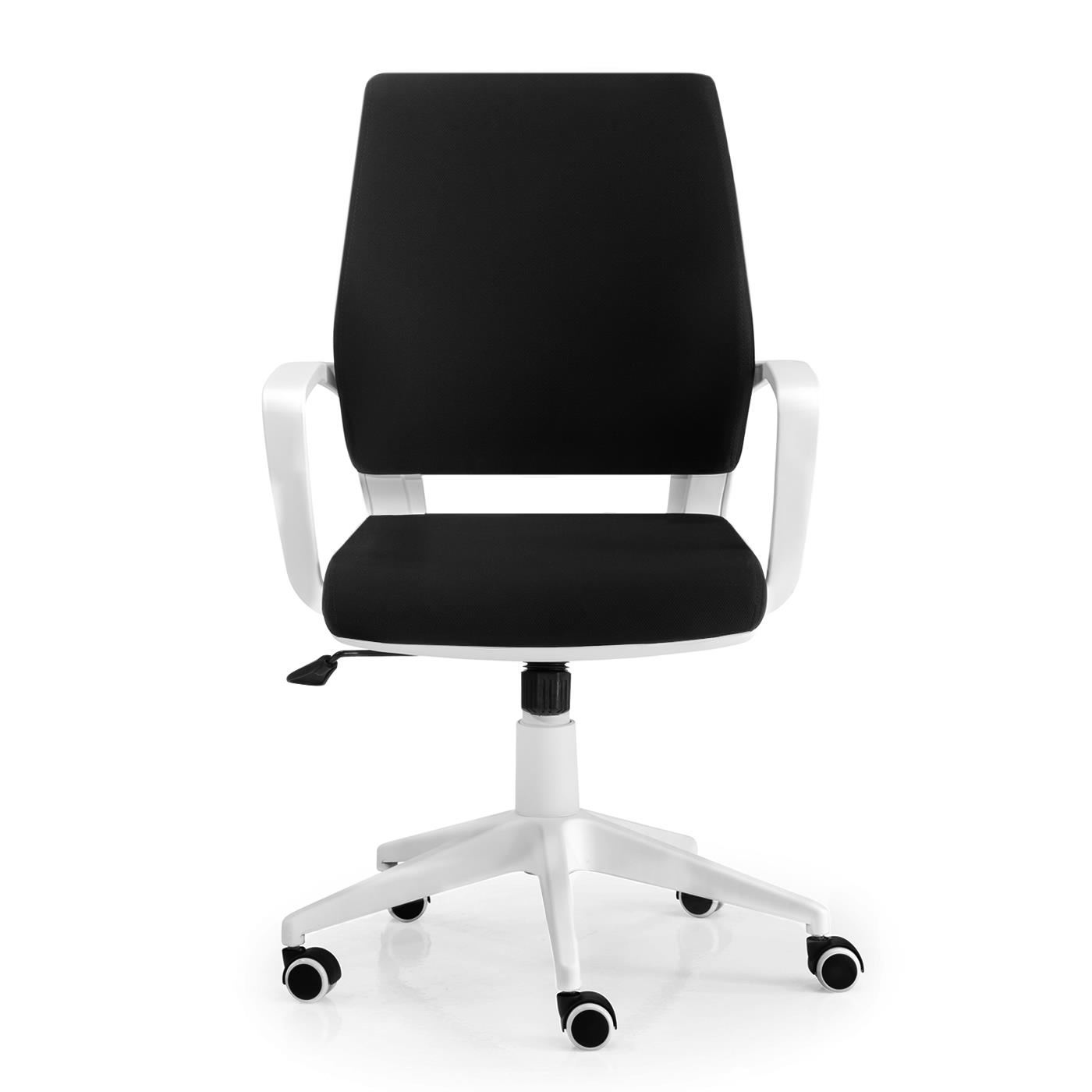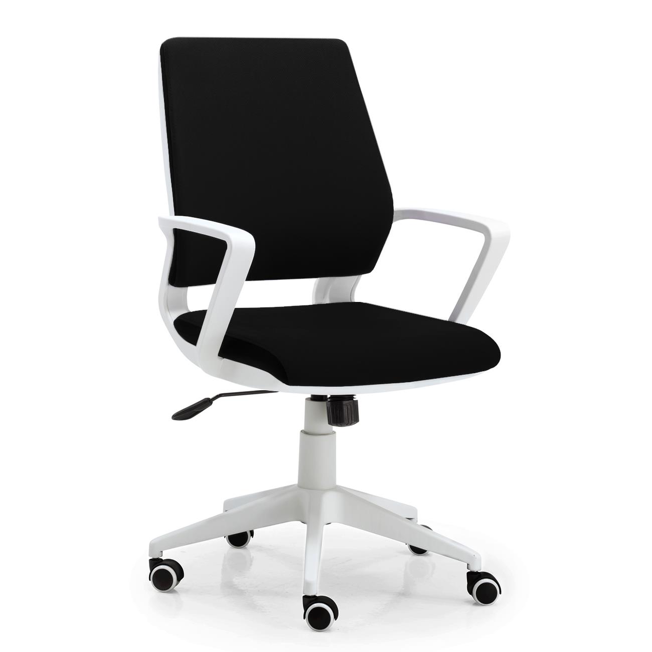 DEMO# Cadeira de Escritório IRMA, Estrutura Branca, Mecanismo de Balanço, Em Pano, Preto