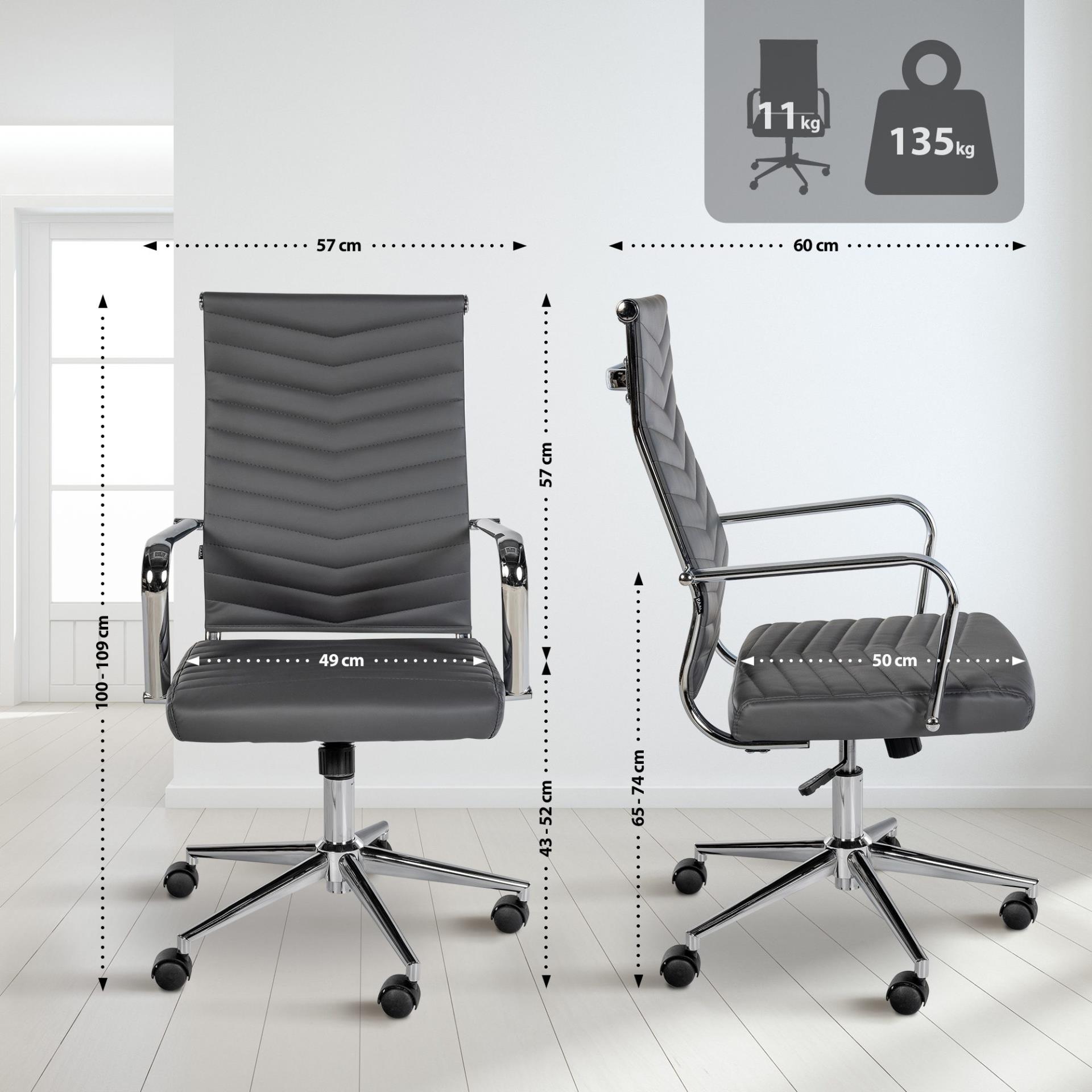 DEMO# Cadeira de Escritório KOBE, Design Elegante e Moderno, Base Metálica, em Pele, cor Cinzento