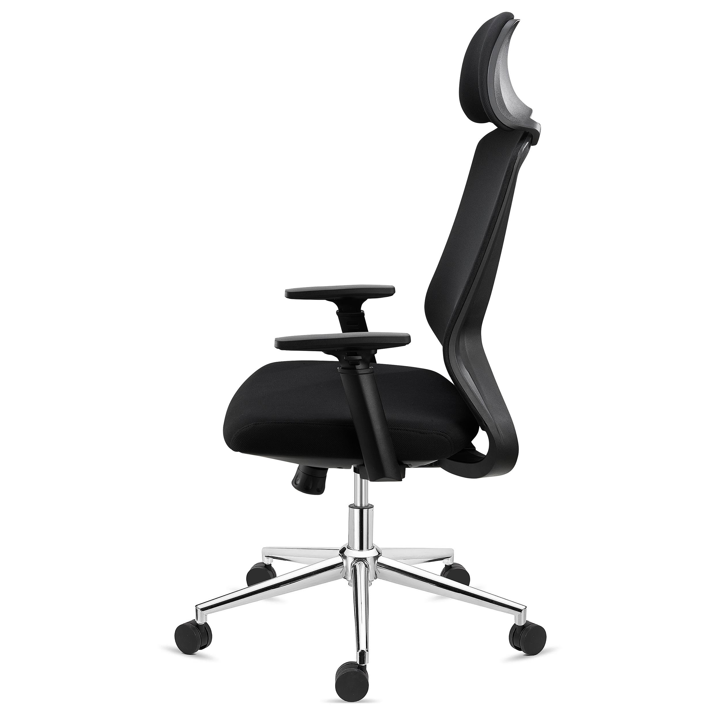 Os apoia braços são ajustáveis em altura e têm uma superfície suave. São resistentes e estáveis tal como aparentam nas fotografias, o que permite que se mantenha sempre uma postura correcta durante um dia de trabalho. Esta versão inclui ainda um apoia cabeças integrado no encosto.